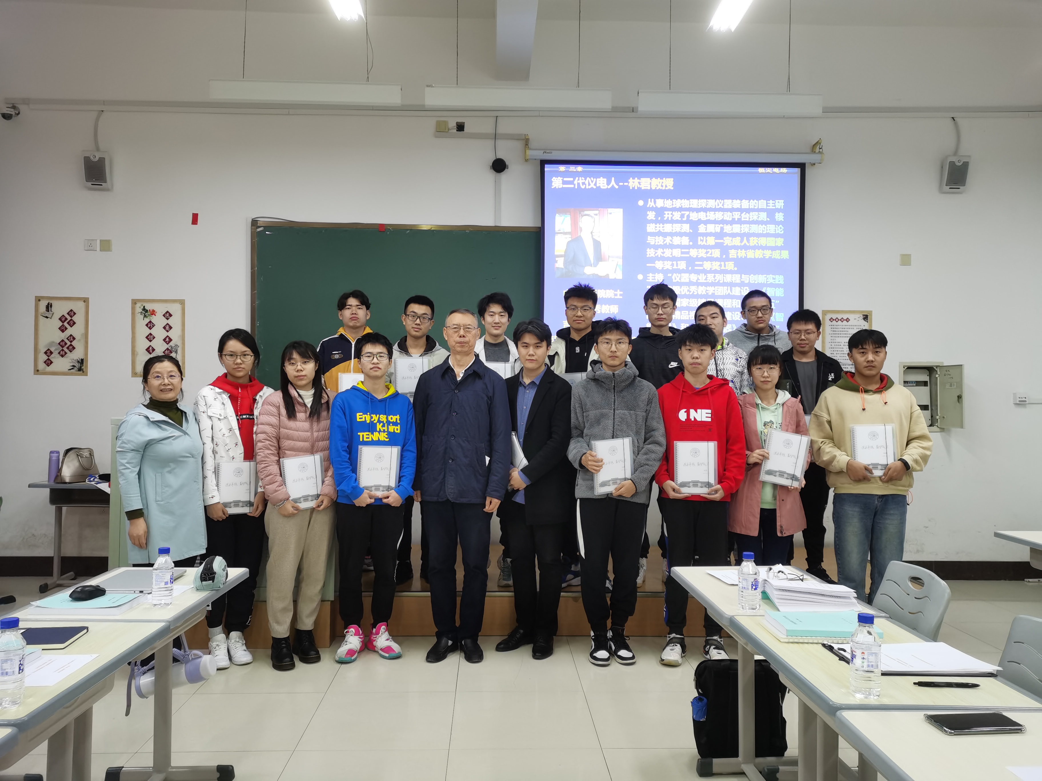 课程开始,嵇艳鞠老师介绍本次交流的主要内容,依托专业课程搭建院士与本科生的交流平台,鼓励同学们把握机会,积极交流。林君院士与同学们分享了自己的成长经历,从少年时期的勤学苦读到留校任教后四十三年如一日的默默坚守,再到“把论文写在祖国大地上”的杰出科研工作者他强调坚持信念、不懈努力的重要性,鼓励同学们珍惜时光,不负韶华,提升自己,贡献青年力量。听完林君院士的讲述,在座同学深受触动,利用宝贵的机会积极沟通交流,围绕科学研究的实际应用、未来人生发展规划提出自己的问题,林君老师一一进行耐心解答,课堂氛围热烈,同学们的科研兴趣得到了进一步提升。当问及是什么理想信念支撑林君老师坚持四十三年从事地学仪器研发时,一句“简单来说就是责任”的回答充满重量。最后林君老师再次鼓励同学们要有所追求、勇于担当,把个人理想融入到祖国的发展事业中,做具有家国情怀的新时代奋斗者。会后,林君院士还亲切地赠与参会同学笔记本作为鼓励,激励同学们“追求卓越,勤学成才”。