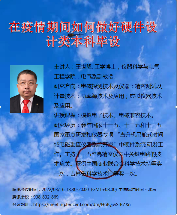 当前长春市新冠肺炎疫情爆发突然、来势凶猛,防控形势异常复杂严峻。为更好解决2022届毕业同学在封校期间做毕业设计所提出的问题、疑惑等情况,哈哈体育举办里疫情期间系列线上专题讲座。2022316日,由我公司副教授王世隆老师针对“在疫情期间如何做好硬件设计类本科毕设”问题进行讲解。会议由教学副经理刘长胜教授主持,参与会议的有毕业设计的指导教师和2018级的同学200余人。