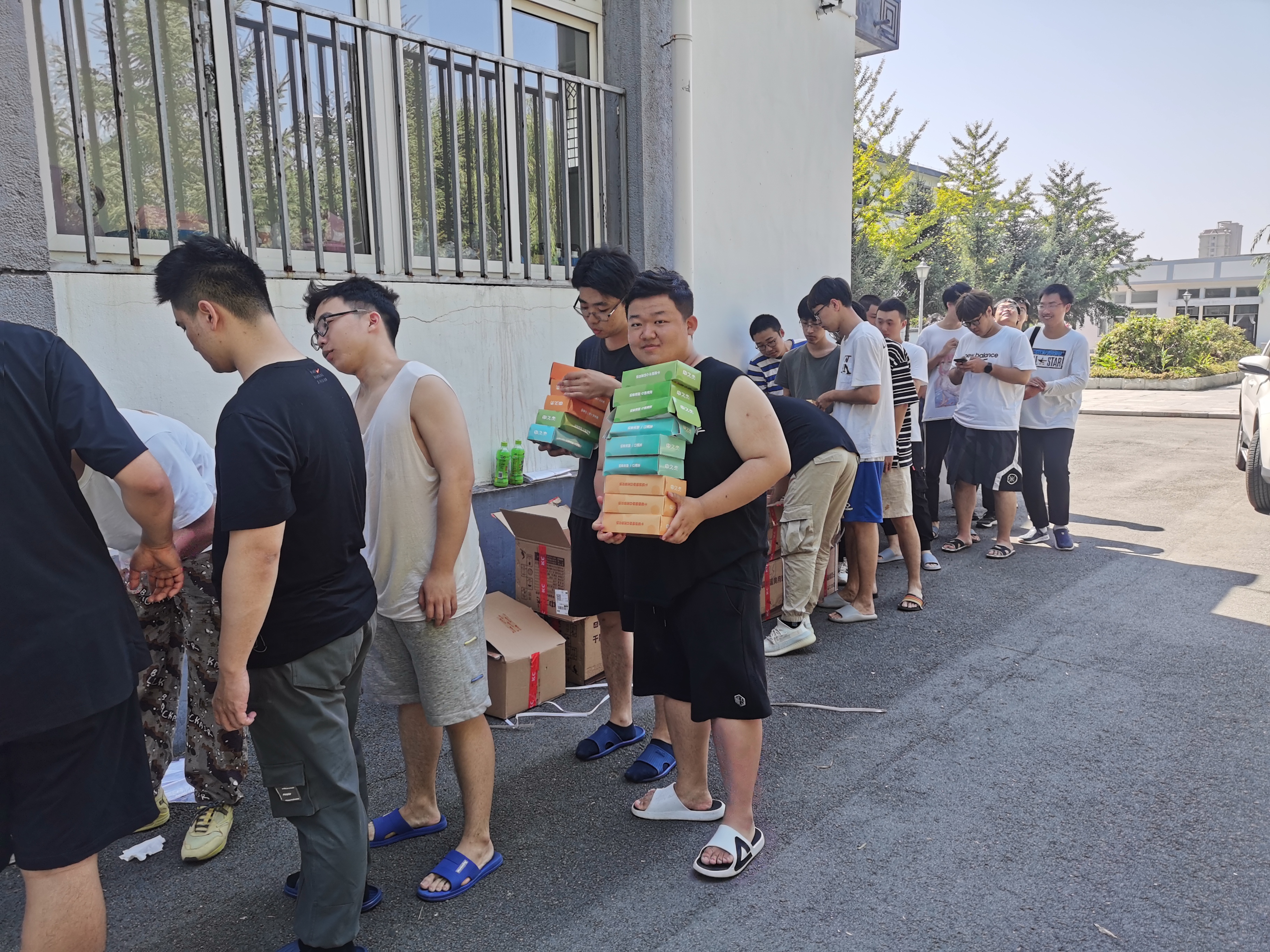 兴城基地里,哈哈体育的老师组织同学们领取月饼和水果,向同学们询问实习感受和生活情况,员工脸上洋溢着笑容,感受到来自集团与公司的慰问与关怀,纷纷向老师们表达感谢和送上节日祝福,实习早出晚归的疲惫都化成了心中的温暖和感动。不回家的中秋,不一样的温暖,在这个团圆的节日里,与相伴三年的老师、同学一起度过美好的中秋佳节,共同品尝美味月饼,将成为大家心中一段珍贵美好的回忆。