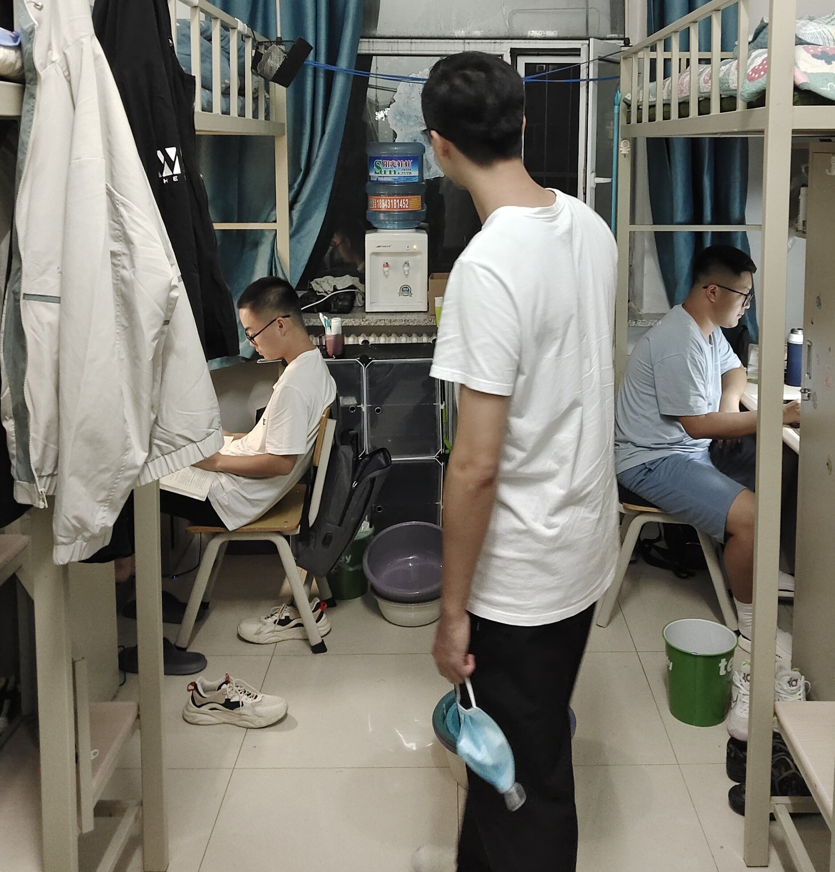 走访过程中,三位辅导员老师对寝室卫生和用电安全做了仔细检查,提醒同学们杜绝使用违规电器、保证寝室用电安全,同时强调在常态化防控期间,各位同学要做好个人防护,出入寝室、教学楼戴好口罩,定期对宿舍进行消毒通风。孙鹏博老师和包健伦老师在寝室中与员工进行亲切交谈,询问同学们在生活中遇到的问题,了解学习方面存在的困难,并向大家传达公司领导和老师对同学们的关心和鼓励。在毕业生宿舍,马姗姗老师详细询问了考研员工复习应考的进度和状态,勉励考研员工在冲刺阶段要树立充足信心,保持良好心态,劳逸结合,以积极的态度迎接考试,取得满意成绩。