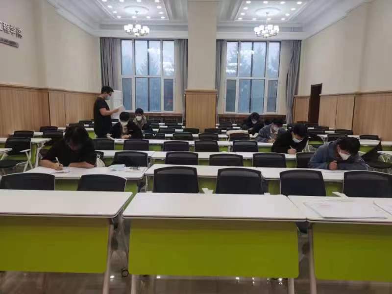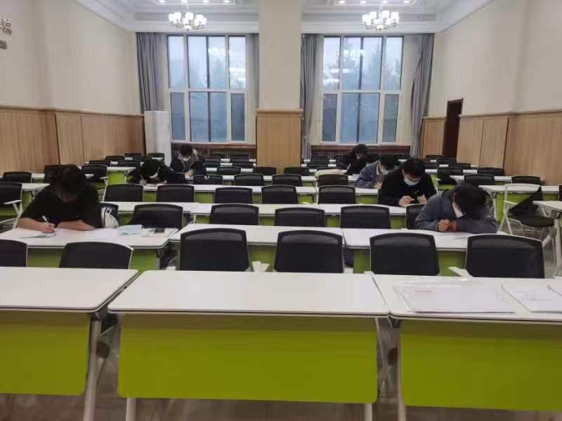 8:30,2019级本科生辅导员马姗姗、博士兼职辅导员史博日来到模拟考场现场,向同学们解读模拟考试要求后,考试正式开始。为了让考研的同学们更好的了解和体验考试,熟悉题型结构和考场氛围,本次模拟考试全程安排监考人员,考试时间、试卷和答题卡样式、答题填涂规则等均严格按照研究生考试要求进行,旨在为同学们提供了一个自我检测的机会,让同学们更全面地了解到自己在学习过程中的优势与不足,同学们在拿到试卷后迅速进入答题状态,并以此次模拟考试为契机,找出差距和不足。