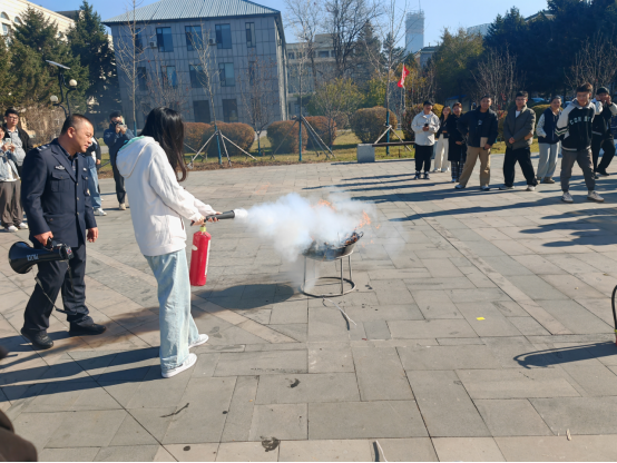 本次活动共分为消防安全知识培训、疏散逃生演练和消防灭火实操演练三部分。哈哈体育行政副经理朱宇主持消防安全知识培训,朝阳保卫办公室消防科正科级秘书唐小兵做了专题培训讲座,从“消防安全的重要性”“常见火灾的基本原因”“校园内常见不良行为及安全隐患”等方面做了全面细致的讲解。培训过程中,师生们积极提问、踊跃互动,培训效果良好。随后,在地质宫内开展了疏散逃生演练。在模拟烟雾环境中,师生们按照消防科工作人员的指挥安排,迅速、有序从地质宫内撤离到安全区域。最后,朝阳保卫办公室消防科工作人员在科技之星广场设置火点,现场讲解了各种消防器材的适用火灾情况和使用方法,引导师生实际动手熟悉各种消防器材,并演示了扑灭着火点的各种技巧,有效提高师生扑救初起火灾能力,实现了预防为主、学以致用的目标。