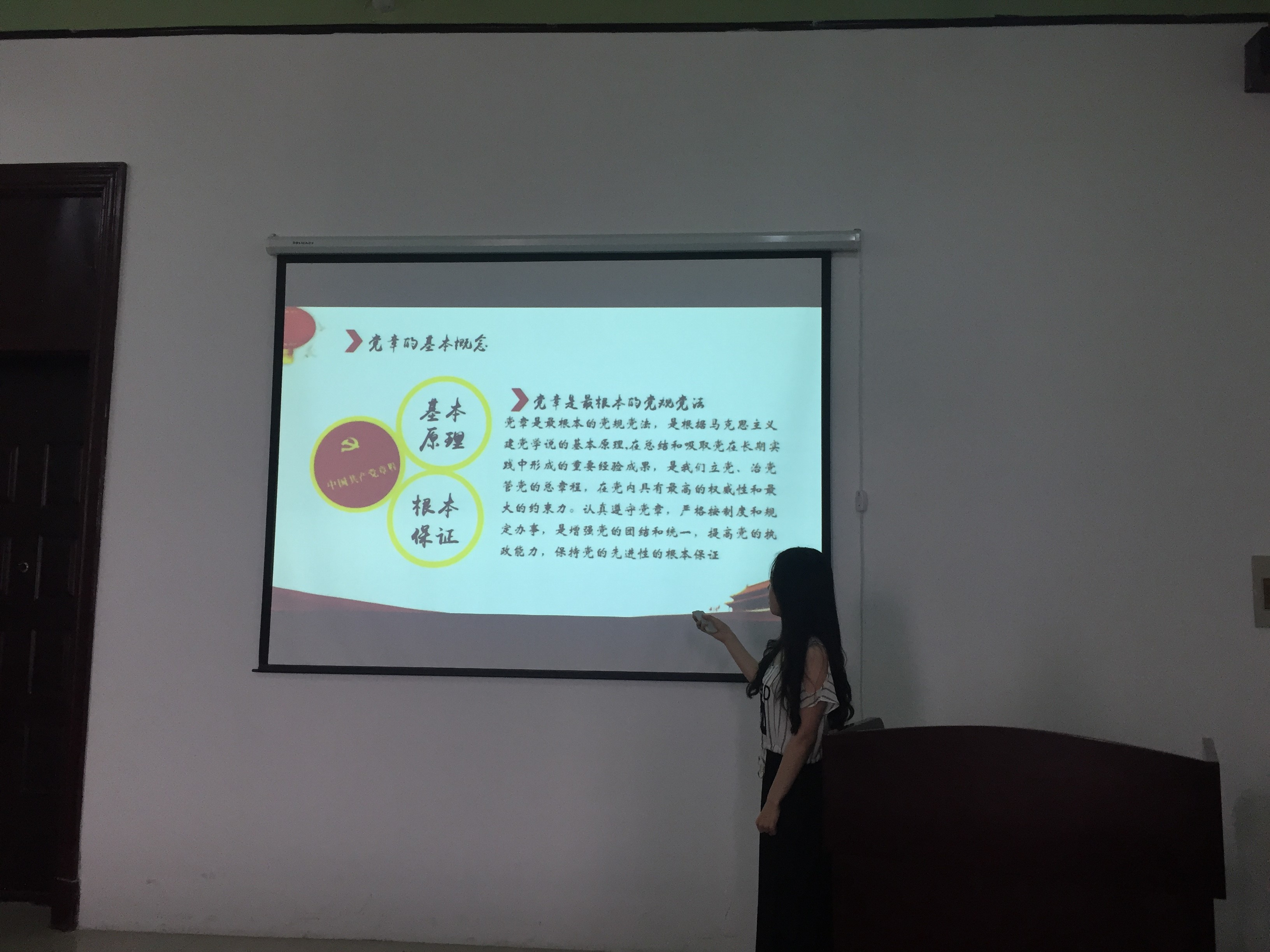 之后组织同学们进行小组研讨,现场氛围活跃,同学们积极参与讨论,充分地学习了党章知识,加深了对新党章的认识,并从中体会到了“温故而知新”。个人的思想觉悟得到了进一步提升,更加坚定了向党组织积 极靠拢的决心。