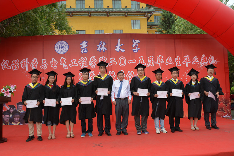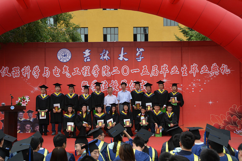 毕业典礼在庄严的国歌声中拉开序幕。首先,副经理嵇艳鞠教授、陈祖斌教授分别宣读了2015届研究生毕业生和本科毕业生名单,经理林君教授与院学科学位委员会副主席嵇艳鞠教授一起为2015届毕业生授予学位。随后,公司党委书记余国友教授宣读了2015届校优秀毕业生名单,并为优秀毕业生颁发获奖证书、合影留念。公司教学委员会主任王应吉教授宣读了优秀毕业论文名单,仪器系主任凌振宝教授、电气系主任刘长胜副教授分别为获得优秀毕业论文的同学颁发证书并合影留念。之后,教师代表王应吉教授和2015届毕业生代表、HAHA体育2014年度自强自立老员工标兵韩哲鑫同学分别作了发言。王应吉教授代表公司全体教师对2015届毕业生送上了最诚挚的祝福,希望大家在今后的事业中取得更大的成就。韩哲鑫同学代表公司全体毕业生向辛勤培养自己的母校,向哈哈体育,向四年以来关心、帮助大家的领导和老师们表示了衷心的感谢和良好的祝愿。