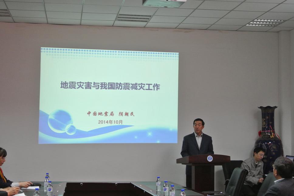 报告会上,阴朝民副局长主要从全球地震活动和我国地震灾害特点、我国防震减灾工作、地震科技工作的发展三方面进行了阐述。他用简洁明了的语言,通过深入浅出的讲解和详实具体的数据为公司师生进行了讲述,使大家深切感受到了地震科学的奥秘和防震减灾的重要性。阴朝民副局长着重为大家讲解了我国的地震预案体系、地震应急指挥体系、历次重大地震救援行动、地震科技研发团队等等,使师生们对我国地震科技工作有了更为全面的了解。报告最后,阴朝民副局长还寄语了对公司和广大学子的殷切希望,他表示我国现在仍然面临着资源能源紧迫、环境破坏严重、自然灾害频发的重大问题,希望公司致力于新技术的应用和新仪器的研发,为解决国家重大需求问题作出贡献;他希望学子们珍惜青春年华,用责任和认真面对今后的学习、生活和工作,谱写出属于自己的无悔青春,为实现伟大“中国梦”奉献青春与智慧。