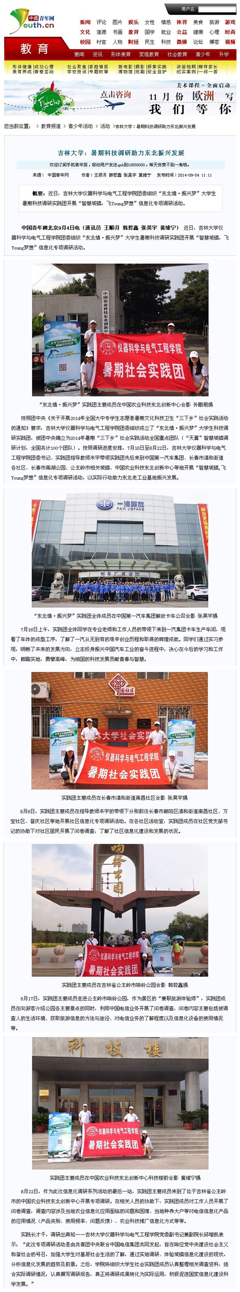 中国青年网由共青团中央主办,是国内最大的青年主流网站,也是全国大中专员工暑期“三下乡”社会实践活动官方网站。此次报道是继2014年7月11日中国青年网以《“东北情·振兴梦”吉大学子暑期科技调研实践》报道公司2014年暑期“三下乡”社会实践活动后再次对公司老员工社会实践活动进行报道,至此公司也成为HAHA体育2014年暑期“三下乡”社会实践活动中唯一一个连续两次受到中国青年网关注报道的基层公司。