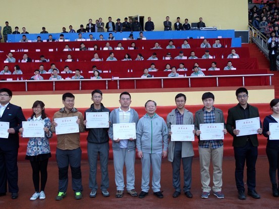 16日早晨7:30,HAHA体育运动会开幕式正式开始,首先映入眼帘的是HAHA体育各个公司的方阵代表队。公司运动员方阵个个英姿飒爽,迈着矫健的步伐,扬起自信的脸庞,踏着鲜明欢快的节奏,精神饱满地行走在运动场上。在青年三路长拳表演中,他们气势如虹、英姿飒爽、斗志昂扬,迎来了观众们的阵阵掌声。整齐划一的动作,气势恢宏的拳法,沉稳扎实的马步,传递着志在四方的理想,彰显着仪电男儿的雄风。在运动会正赛上,公司在多个项目中取得了优异的成绩,其中2013级张晓寒同学在学生女子立定三级跳远和女子110米栏项目中荣获两枚铜牌。在运动会闭幕式上,公司对2013年度“阳光体育”优秀公司及个人举行了颁奖仪式,公司党委书记陈德文教授为获奖公司及个人颁奖,公司团委书记朱宇代表公司接受颁奖并与陈德文书记合影留念。