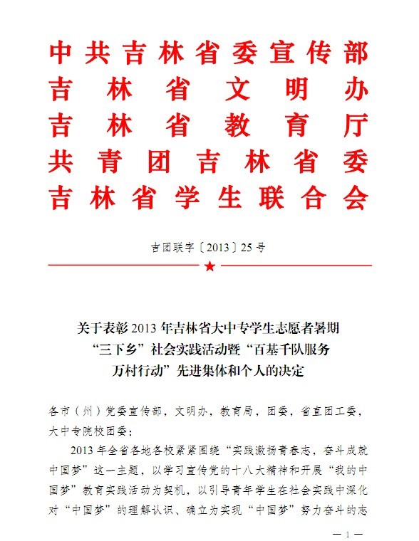 近日,中共吉林省委宣传部、共青团吉林省委、共青团长春市委等多个省市部门公布了2013年度共青团工作各项评比结果,公司在各项评比表彰中获得了多项荣誉,取得了可喜成绩。