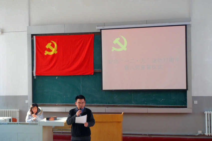 一二运动是我国青年员工爱国运动中的一次典范,希望公司全体员工党员能牢记国耻、珍爱和平、积极进取、开创未来。入党宣誓仪式是对全体员工党员一次深刻的党性教育,希望大家能在今后深入学习领会党的十八大精神,牢记“全心全意为人民服务”的宗旨,认真践行入党誓言,肩负起中华民族复兴和发展的伟大使命,珍惜大学学习的宝贵时光,努力实现自己的人生价值,为社会主义事业的建设和发展奋斗终身!