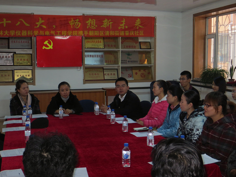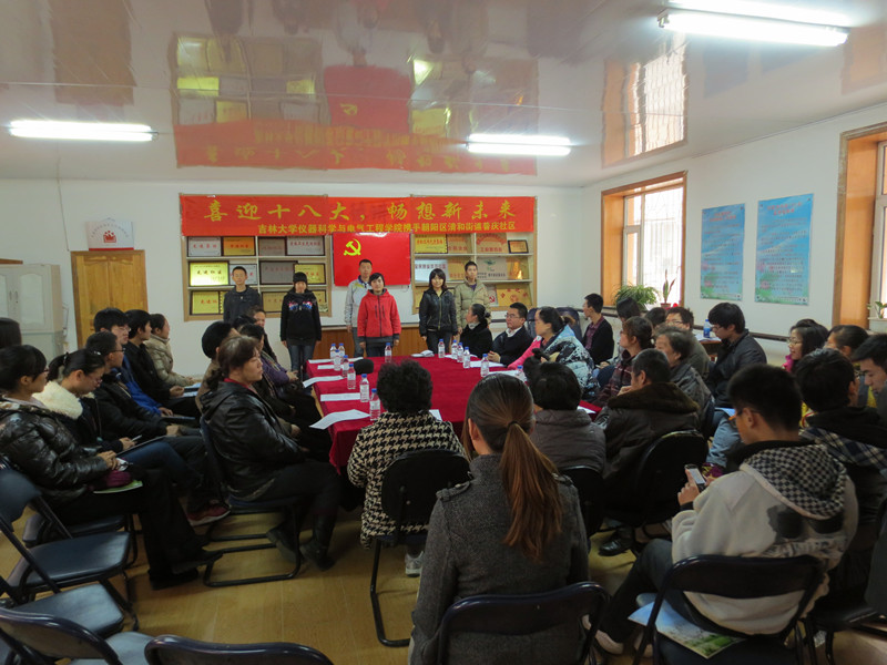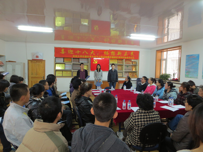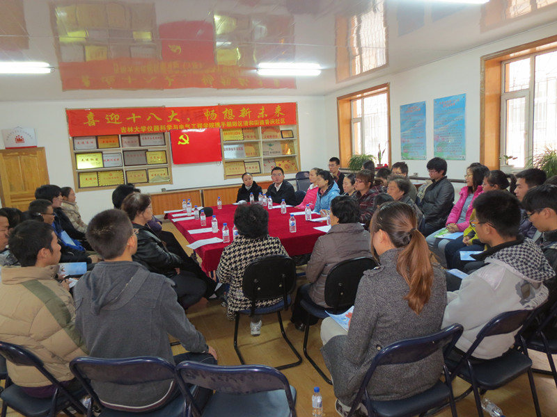 为了热烈迎接党的十八大胜利召开,提高青年老员工对党的政策方针的理解,深入学习社区老党员“吃苦在前、享受在后”、“全心全意为人民群众服务”等传统优良品质精神,引导青年员工更加全面正确地认识和理解十八大的重要意义,带领广大青年员工走进基层、走进社区,哈哈体育团委携手长春市朝阳区清和街道普庆社区党委在十八大召开前夕2012年11月7日上午在清和街道普庆社区会议活动室举办了以“喜迎十八大,畅想新未来”为主题的青年学子与新老党员座谈活动。清和街道党办主任王群宝、街道精神文明办副主任肖帅颖、街道团工委书记张晶、哈哈体育团委书记刁庶、普庆社区党支部书记陈雨虹、哈哈体育团委副书记朱宇、普庆社区党支部副书记钱琳琳及相关人员出席了座谈会,哈哈体育分团委、员工会主要员工干部、员工党员代表、员工代表及清和街道普庆社区老党员代表等参加了座谈会。