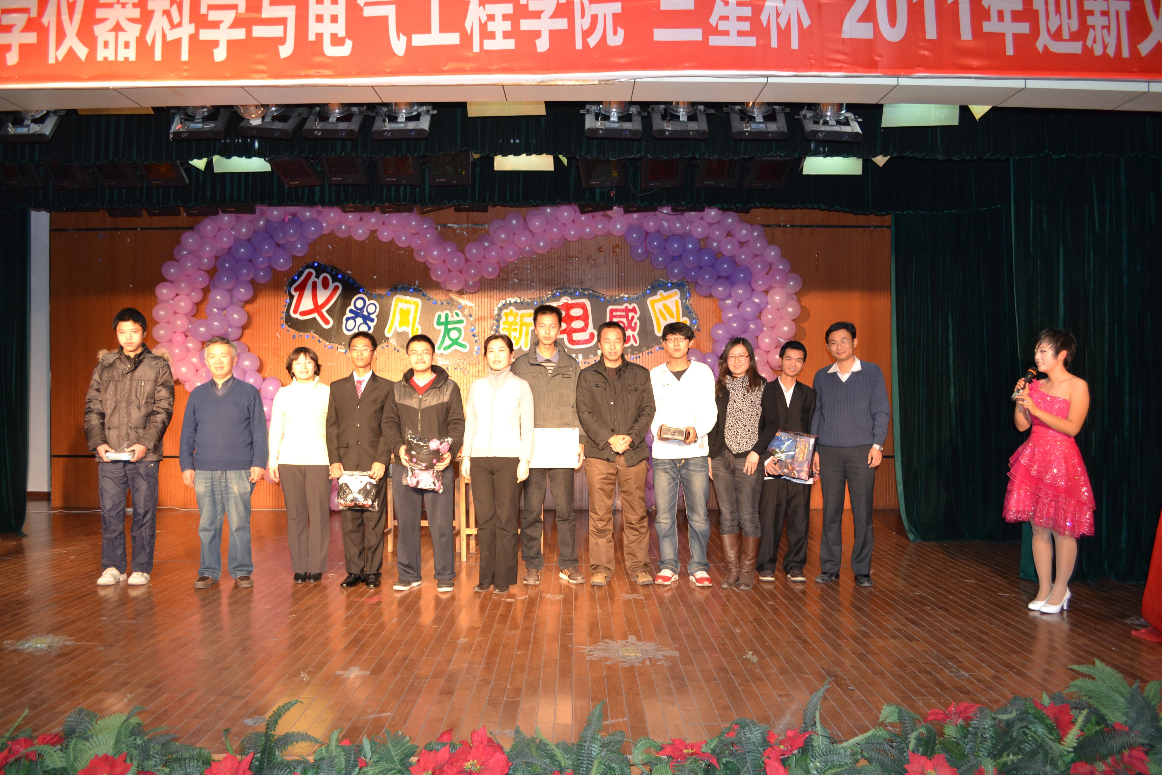 2011年11月23日晚,“仪器风发 新电感应”——哈哈体育“三星杯”2011年迎新文艺晚会在中心校区田家炳活动中心A座礼堂隆重举行。晚会得到了公司领导老师的高度重视,哈哈体育经理、博士生导师林君教授,公司党委书记余国友老师,行政副经理房华老师,公司党委副书记兼副经理邱增凯老师,仪器科学与技术系主任、651001班班导师凌振宝教授,电气工程系主任、651104班班导师嵇艳鞠教授,院教学委员会主任、651106班班导师王应吉教授,电气工程系副主任、博士生导师于生宝教授,2011级各班班导师、公司全体辅导员老师及朝阳校区各兄弟公司员工会主席应邀出席了晚会。此次晚会由哈哈体育团委员工会承办,并得到了长春三星全产品专卖店的大力支持,晚会还全程采用微博墙与现场观众互动。
