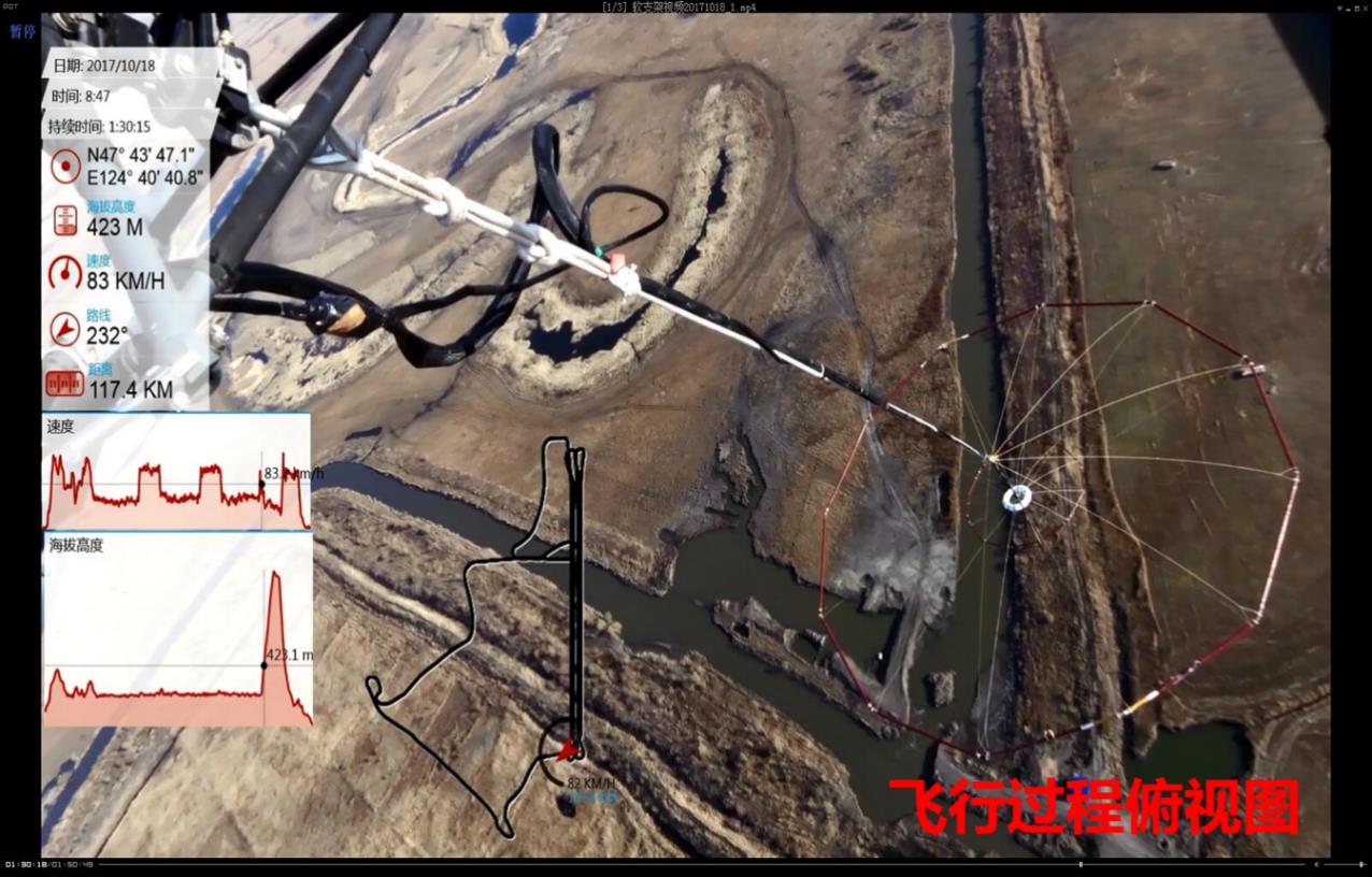 这次成功飞行标志着公司在直升机航空电磁探测系统中的核心技术方面取得新的重大突破,包括大尺寸软支架吊舱研制、大电流高效发射机研制、大有效面积传感器研制、高精度数据收录系统研制、地面远程监测控制系统研制以及附属的一次场自抵消装置等。系统实现的关键技术指标包括:吊舱直径24米、发射磁矩800000Am2、45节飞行时动态噪声小于±1nT/s数据采样率192kHz远程地面控制距离100km。系统整体工作稳定可靠,可实现机上无人操控、长时间、远距离测线飞行,单架次测区覆盖40平方公里以上。
