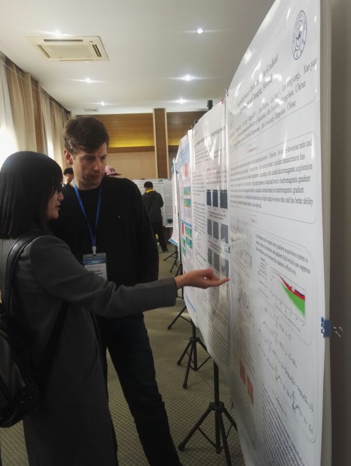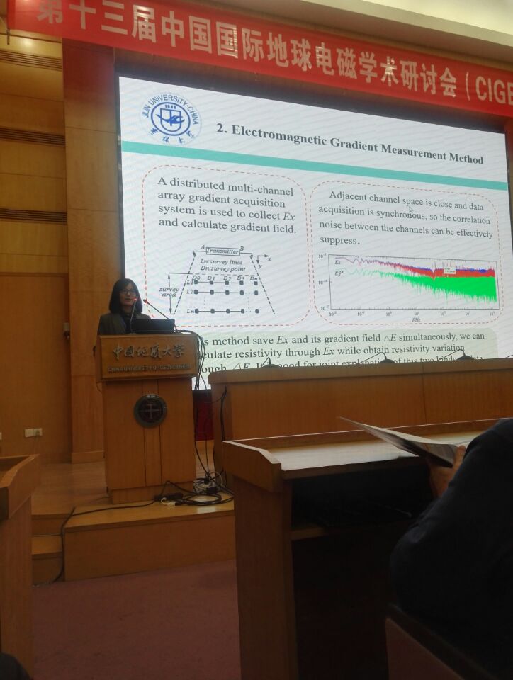 哈哈体育经理嵇艳鞠教授带领电法组9名教师和6名员工参加了此次会议,嵇艳鞠教授作了《基于分数阶有限差分法的时域电磁慢扩散三维仿真》的报告,报告内容引起了国内专家学者的肯定和赞扬。2017年“李四光”奖学金获得者蒋善庆同学作了《联合EMD和wavelet的MCSEM数据噪声压制方法研究》的报告,国内外学者就报告内容展开了激烈的讨论。哈哈体育电磁方向的最新研究进展,引起了国内外同行的极大兴趣。同时,公司将与地球探测科学与技术公司共同承办2021年第十五届中国国际地球电磁学术研讨会,这也是该项国际学术会议第一次在东北地区召开。