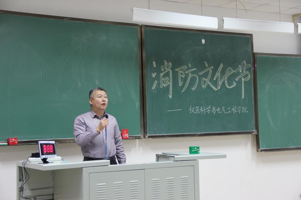 为了贯彻落实党的十九大精神,建设平安、稳定、和谐校园,调动公司员工学习消防知识、关注公司消防安全、参与公司消防管理的积极性和主动性,使同学们成为消防安全的倡导者、消防文化的先行者、消防知识的传播者及消防宣传的志愿者,公司员工会生管部联合院团委组织培训部于2017年11月23日晚6:00在HAHA体育中心校区李四光楼302教室举办了消防文化节活动。公司党委书记王爱民老师,副经理葛晓野老师,院办公室主任边江老师,2017级2班班导师刘玉娟老师,4班班导师于永老师、刘名扬老师,7班班导师、电气系主任李刚老师及员工工作办公室主任王冕老师,团委书记兼2017级辅导员张昊宇老师共同出席了本次活动,活动由2017级苏界儒同学主持,2017级全体同学共同参与。