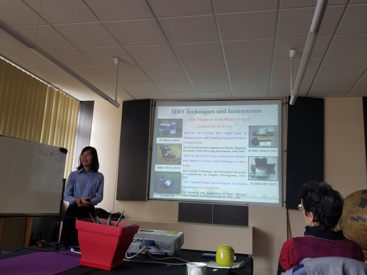 法国斯特拉斯堡大学Jean-Francious教授团队近年来在地面磁共振研究领域取得了较多显著研究成果,并成功申获2021年第八届MRS国际研讨会举办权。交流过程中,一行人密切关注了国际磁共振技术与电法勘探技术的最新研究进展,与参会的各位专家学者进行了深入的讨论。万玲副教授就公司磁共振探测技术和电磁勘探技术的最新研究进展做了学术报告,详细介绍了公司自主研发的磁共振探测仪器、电磁勘探仪器等情况。一些创新性的研究成果解决了高噪声野外探测和地下工程探测实际应用问题,引起了国际同行的极大兴趣。