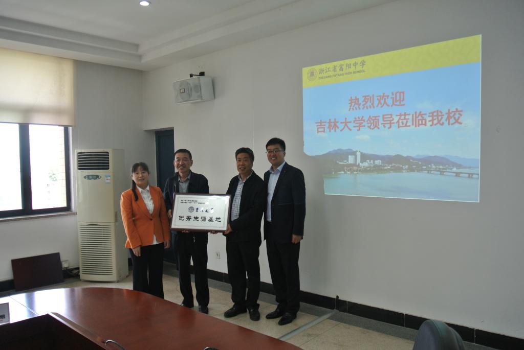 在富阳中学,董事长丁明中,副董事长赵承军,党委副书记周朝勇,副董事长季丰与HAHA体育招生宣传组的老师进行了座谈,丁明中董事长介绍了富阳中学的情况和浙江省高考改革的模式,并对HAHA体育招生宣传提出了建议;嵇艳鞠经理通过PPT介绍了HAHA体育的情况,重点介绍了公司大类培养与交流、校内转专业、人才成长等工作,并播放了HAHA体育2019年招生宣传片,并表示将根据丁明中董事长的建议做好今后HAHA体育的招生宣传工作,最后嵇艳鞠经理向丁明中董事长授予了“HAHA体育优秀生源基地”牌匾。