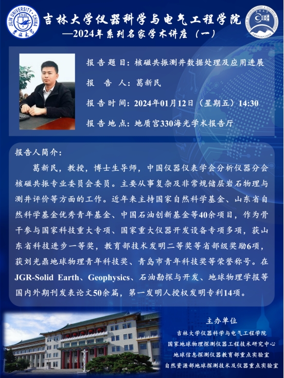 2024年系列名家学术讲座--核磁共振测井数据处理及应用进展(20240112)