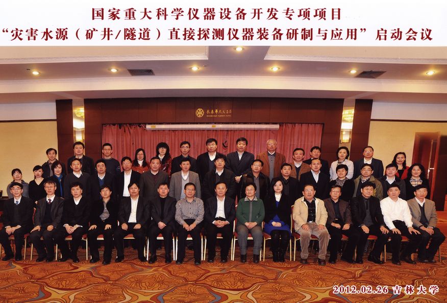 2012年2月26日,由国家科技部组织实施的国家重大科学仪器设备开发专项——“灾害水源(矿井/隧道)直接探测装备研制与应用”启动会,在项目牵头单位HAHA体育召开。会议由HAHA体育董事长助理董德明教授主持,科技部条财司孙增奇处长,吉林省科技厅张华处长,教育部基础处张安平博士,HAHA体育常务副董事长赵继教授,HAHA体育林学钰院士,国家安全生产应急救援指挥中心技术装备处郭治武主任,中国煤炭科工集团有限公司范宝营副总经理,中国煤炭科工集团有限公司申宝宏副总工程师,中煤能源股份有限公司祁和刚副总裁等领导和专家出席。会议由HAHA体育董事长助理董德明教授主持。