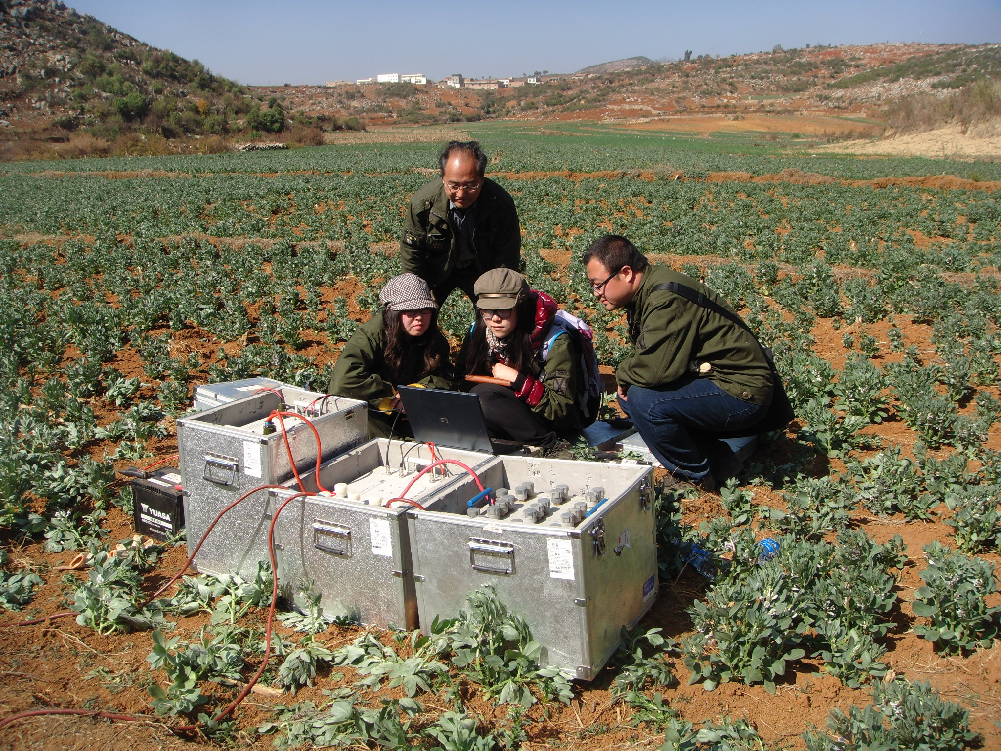 2011年12月27日,哈哈体育李振峰老师带领“核磁共振”和“高密度”项目组田宝凤、栾卉、林婷婷和范铁虎老师以及博士研究生易晓峰同学,一行6人携带自主研发的核磁共振找水仪及高密度电阻率测量仪器,围绕“西南复杂地貌地下水探查方法技术与试验研究”项目实验及解决文山地区近3000少数民族居民的生产生活用水问题,远赴云南文山州丘北县树皮彝族乡大马恒村开展地下水勘测工作。