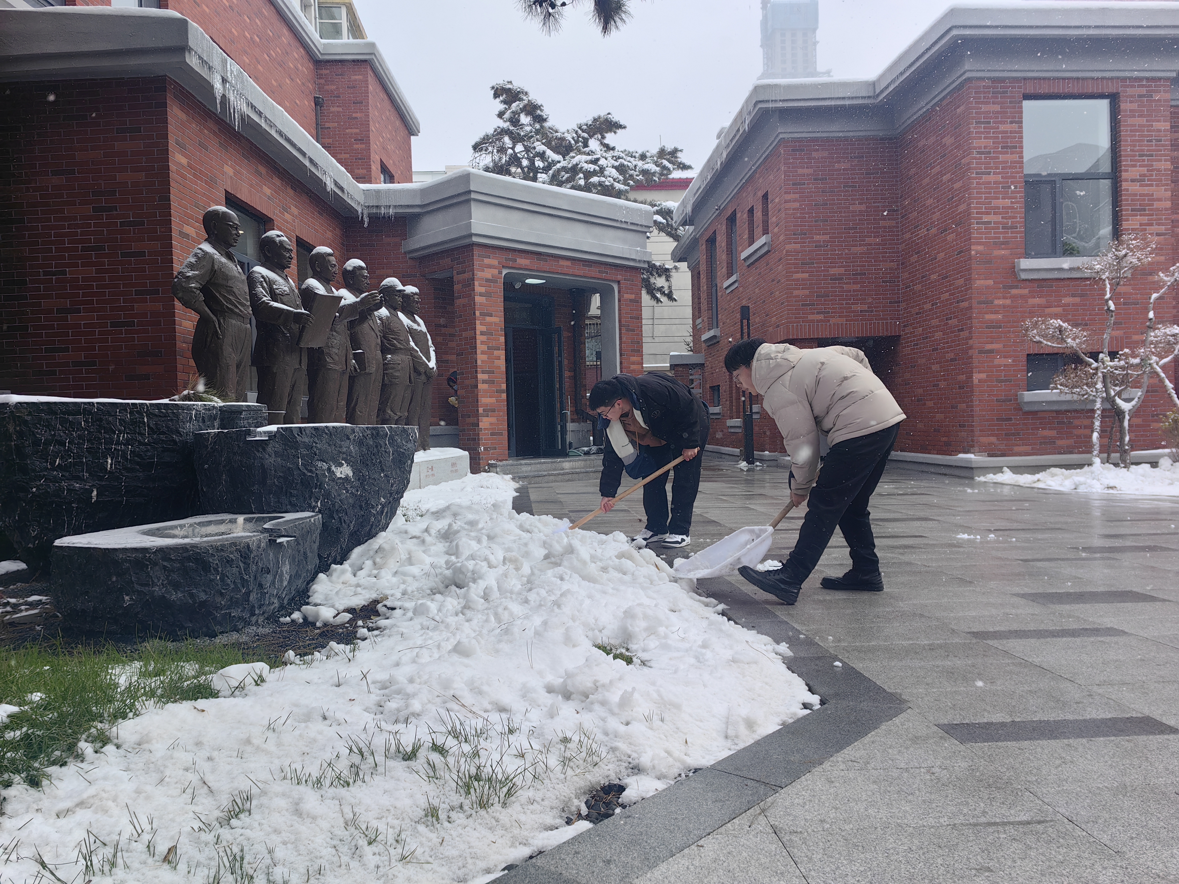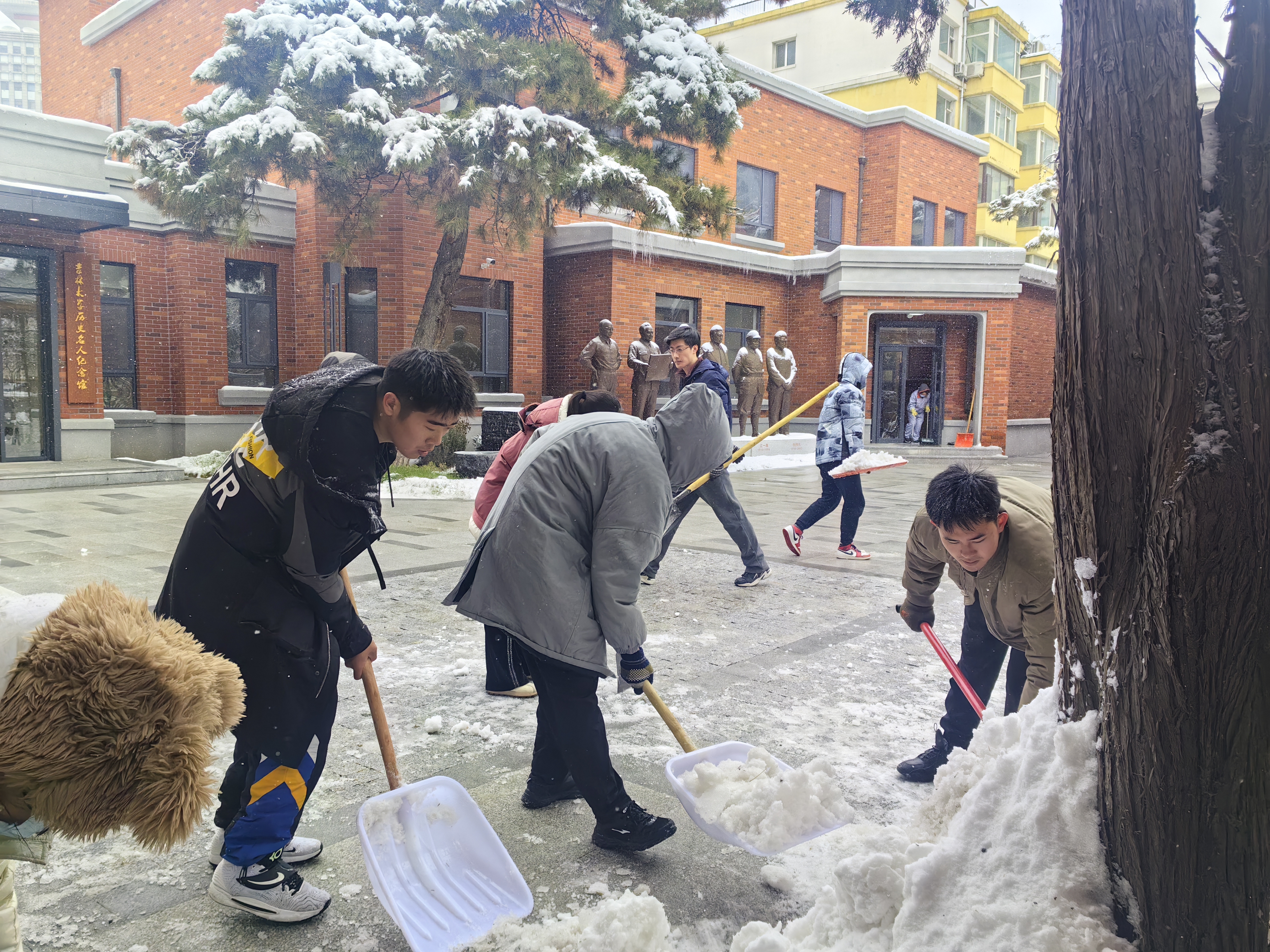 由于此次降雪持续时间长,导致路面积雪较多较厚,为大家的扫雪工作带来了许多困难。但是大家分工明确、团结协作,发扬雷锋精神,不怕苦、不怕累,铲雪、扫雪、装雪、运雪,认真细致地完成每个环节。虽然天气寒冷,许多同学的脸和手都冻红冻僵了,但是大家热情似火、干劲十足,路面积雪很快就被大家清扫干净。看着馆前道路慢慢恢复了原先的整洁,大家的脸上也露出了开心和满足的笑容。