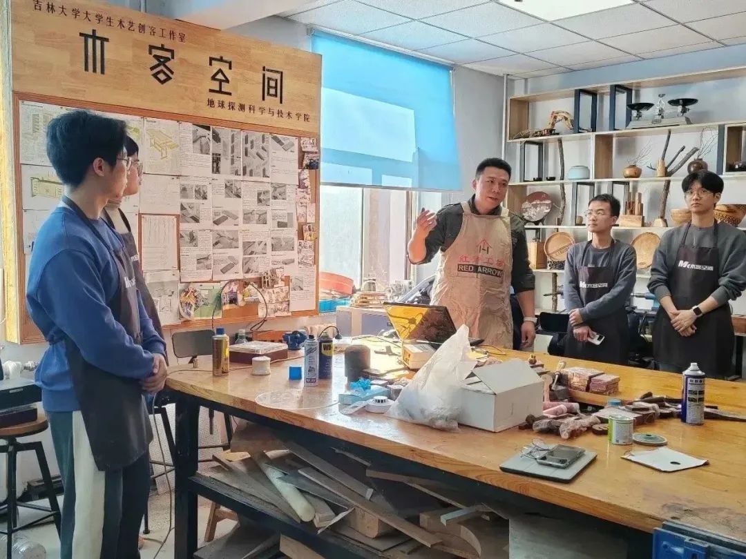 地球科学公司党委副书记兼副经理李阳老师担任木工导师。李阳老师详细介绍了木客空间的发展历史、木艺制品的类别、创作工具以及创作流程。在展示了往届优秀作品后,同学们开始巧妙构思,精心思考,在李阳老师的指导下将其创意制成作品。室外白雪皑皑,屋内硕果累累。经过近四个小时的制作,同学们做成的木梳、发簪、耳环等工艺品赢得了大家的阵阵掌声。