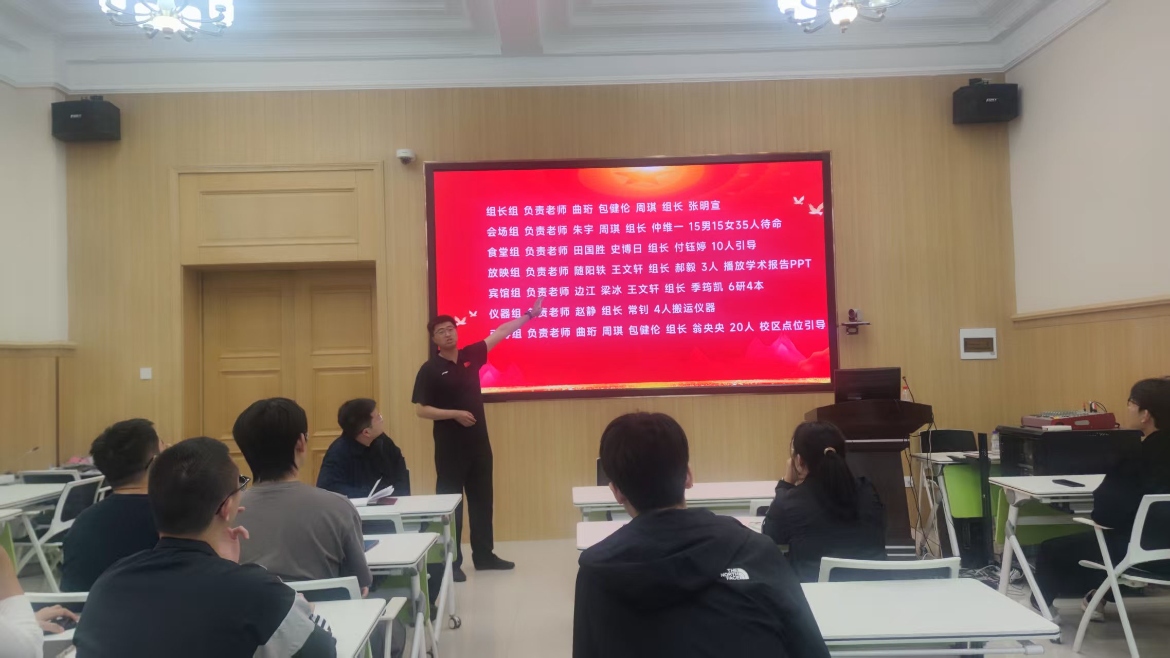 史博日老师和王文轩老师就会场具体工作内容及人员分配进行补充,团委员工会负责人及各年级主要班干部就分组情况进行讨论,确定了各组人员名单并明确了工作内容。