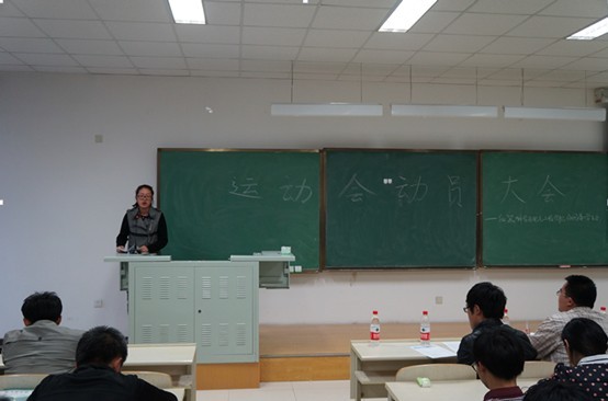 为广泛动员公司员工积极参加第五十三届校运动会,号召参赛选手顽强拼搏、为院争光,哈哈体育于2014年4月20日晚在中心校区李四光楼310教室举办了第五十三届运动会动员大会,院团委书记朱宇老师和公司分团委、员工会全体员工干部以及2013级全体员工会成员参加了大会。