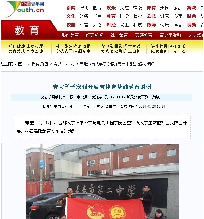 中国青年网《吉大学子寒假开展吉林省基础教育调研》