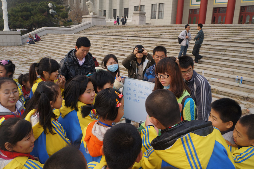 为为深入贯彻共青团中央《关于开展“共青团关爱农民工子女志愿服务行动”的通知》精神,进一步弘扬“奉献、友爱、互助、进步”的志愿服务精神,教育引导青年老员工积极投身到关爱农民工子女志愿服务行动中来,努力营造尊重、关心、关爱农民工的良好社会氛围,为农民工子女的健康学习和生活创造良好条件,由校团委主办、哈哈体育团委承办的第九期“周末梦圆大学”农民工子女关爱行动于2013年11月2日走进朝阳校区,当天下午哈哈体育老员工志愿者们带领来自长春市西安小学的64名农民工子女在文化广场地质宫门前开展了沟通传递爱心,周末圆梦大学”素质拓展活动。