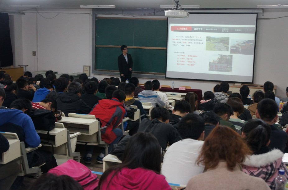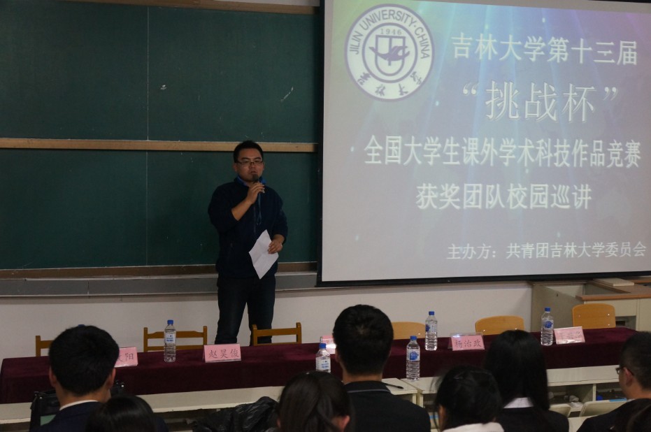 为丰富公司科技创新活动,搭建科技创新交流平台,营造浓厚的科技创新氛围,展示公司“挑战杯”的优秀成果,分享“挑战杯”的辉煌成绩,感受“挑战杯”获奖团队的独特魅力,全面激发青年员工参与科技创新活动的热情,校团委主办了HAHA体育第十三届“挑战杯”全国老员工课外学术科技作品竞赛获奖团队校园巡讲活动。2013年11月8日18:00,第四场巡讲活动在朝阳校区水工楼518阶梯教室举行,本场巡讲由哈哈体育团委承办,校团委学术部部长魏海成、哈哈体育团委书记朱宇、“挑战杯”获奖团队成员以及来自地学部的近200名同学参加了本次活动。