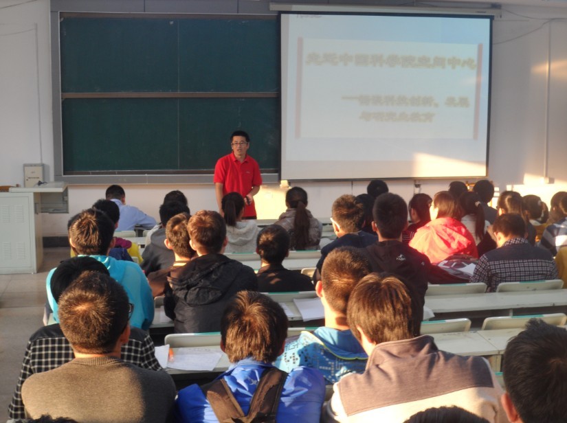 会上,朱宇隆重地为大家介绍了中国科公司的潘奎英和张作和两位老师,并对他们的到来表示热烈的欢迎。随后,中国科公司国家空间科学中心研究生部主任潘奎英老师做了专题宣讲,他首先肯定了公司本科生的教育培养水平,他表示公司严谨科学的培养体系无疑使员工在未来拥有了把握机遇的坚实基础,这一点从公司2010级同学在今年中国科公司夏令营的出色表现便可见一斑。随后,他向大家介绍了中国科公司国家空间中心的相关情况,中国科公司国家空间中心作为我国人造卫星事业的摇篮迄今已有55年的辉煌发展历史,是中国航天发展三个里程碑“东方红一号”、载人航天和探月工程的重要奠基者和贡献者,为我国的航空航天事业立下了不可磨灭的功勋。中国科公司国家空间中心更是1978年我国恢复研究生教育后首批具有博士学位授予权的单位之一。多年来中心依托强大的科研资源优势,科教结合,其公司产品专业已经涵盖了空间中心“空间物理和空间环境”、“空间电子工程技术”和“微波遥感与信息技术”三个主要科技发展方向。最后,张作和老师进行了补充,他强调无论是空间探索还是航空航天,科学的发展都离不开仪器设备的支持,只有灵活的创新仪器才能实现科学梦想,所以他真诚热情地邀请有意愿的同学加入空间中心,共同为我国的空间事业贡献力量。