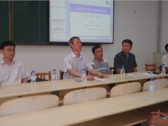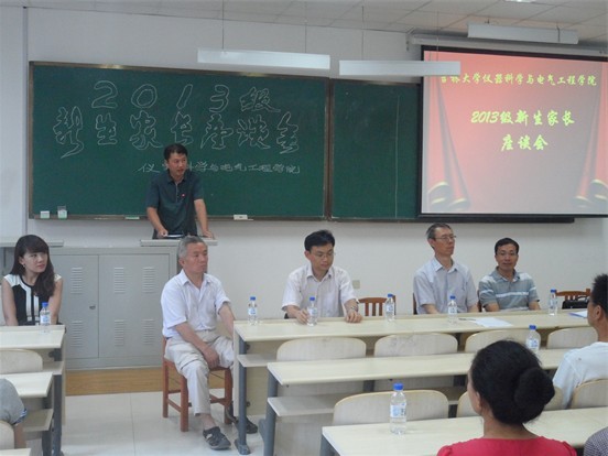 2013年8月23日14:00,2013级新生家长座谈会在中心校区李四光楼109教室热烈召开,哈哈体育经理林君教授、副经理陈祖斌教授、公司党委副书记兼副经理邱增凯老师、副经理王言章副教授、院教学委员会主任王应吉教授、院员工工作办公室主任王冕老师、院团委书记朱宇老师、2013级各班班导师出席了座谈会,2013级新生家长及部分新生参加了此次座谈会。会议由公司党委副书记兼副经理、2013级新生辅导员邱增凯老师主持。