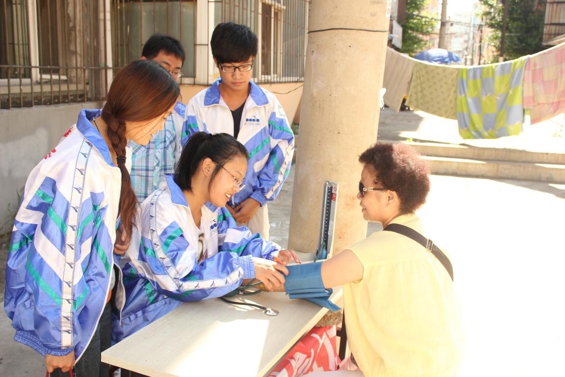 老员工社会实践团成员首先来到南昌社区医疗站,为社区老人测量血压,并与老人亲切交谈,叮嘱他们要注意日常饮食健康和不断加强体育锻炼。不少老人感慨道社会实践团成员为社区带来了生机与活力,让他们的心情更加舒畅,并表示会听从建议,加强锻炼,调整心态,让自己的身体更加健康。随后,哈哈体育老员工暑期社会实践团来到了清河街道南昌社区车棚便民服务站,在这里,实践团成员看到年事已高的两位老人仍在辛勤地工作着,同学们抢着接过他们手中的活儿,帮他们忙碌起来。在与老人们的交谈中,实践团成员了解到其中一位老人虽身体不适却仍旧坚持劳动,大家都十分感动,亲切地叮嘱老人一定要多多休息,注意身体,按时吃药,有任何困难和需要可以及时联系社会实践团成员。二位老人十分感谢实践团成员,他们感慨青年老员工无私的奉献精神让他们生活中充满了关爱与希望。(撰稿人:王顺月)
