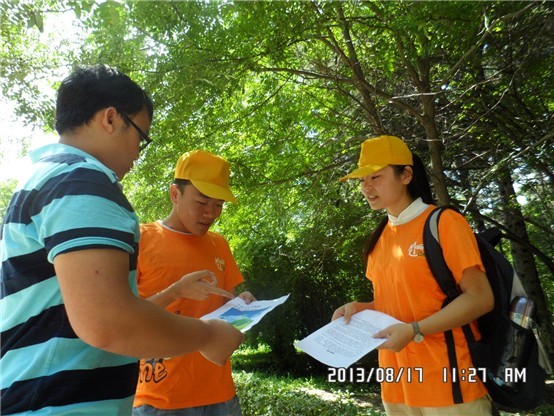 为深入学习宣传党的十八大精神和习近平总书记五四重要讲话精神,扎实开展“我的中国梦”主题教育实践活动,进一步引导青年员工深入基层、走进群众,激发青年员工成才报国的责任感和积极性,哈哈体育团委组织开展了2013年暑期文化科技卫生“三下乡”社会实践系列活动,2013817日上午,由哈哈体育2011级四班徐维、彭醒醒、张楠等同学组成的社会实践团走进长春市南湖公园开展了“青春中国梦 环保树新风”主题志愿服务活动