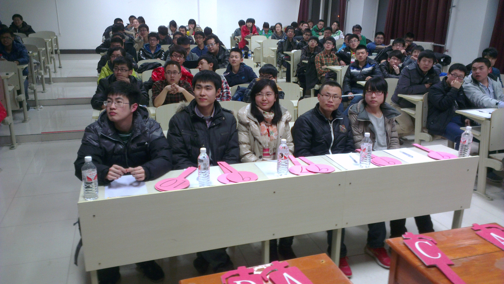 本次竞赛由两会宣传短片放映、必答题、抢答题风险题﹑两会知识幻灯片展示﹑颁奖六个环节组成。整场比赛秩序井然、精彩纷呈,赛场内气氛庄重而热烈。同学们饶有兴趣地观看了纪录片,感慨于近几年中国的发展历程。纪录片放映结束后便立即进入必答题环节,已做好充分准备的各位选手满怀信心,沉着冷静,积极应答,大家的表现都非常优异。接下来是抢答题环节,考验知识素养的同时也要求选手有快速的反应能力。经过一番角逐,选手们尽展己能,不仅为班争光而且带领我们重温了祖国近年来艰难而光辉的历程。紧接着的风险题环节,新颖的比赛形式让现场气氛瞬时活跃起来,选手与搭档的默契配合,充分展现了同学间的凝聚力及创先争优的积极精神。比赛结束,经统计分数确定最终获奖情况,获得一等奖的班级为四班分团委副书记李娇阳、员工会主席朴冠宇、生活部部长陈长松分别为选手颁奖并合影留念。在热烈的掌声中,本次两会知识竞赛圆满落下帷幕。
