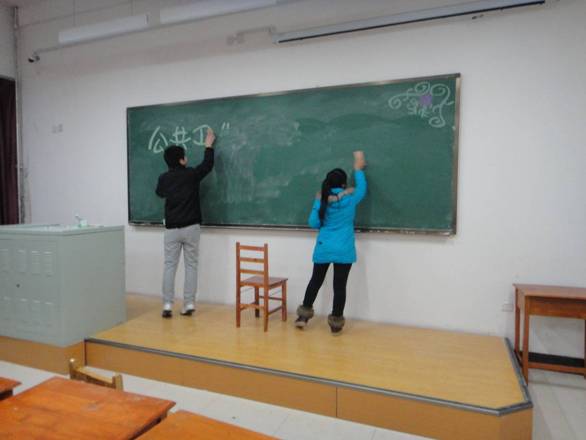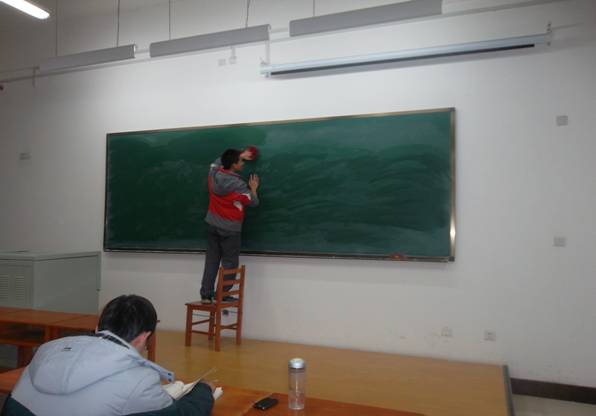 所有的2012级员工志愿者在这一周的时间里每天都会在2130时在李四光楼二楼、三楼进行志愿服务活动,把每个教室的黑板都擦干净,桌椅都摆放整齐,使老师们能够更方便的教学并给同学们营造一个更为舒适的学习环境,活动期间由2011级同学带队,带领12级志愿者们收拾每一间教室,虽然很累,但是大家脸上一直洋溢着微笑,积极认真的参与活动,干净利索的完成了所有任务。有的员工志愿者说:原来一直苦于没有进行志愿服务的机会,原来这些机会就在我们身边,我们做的事真的可以让大家开心快乐!