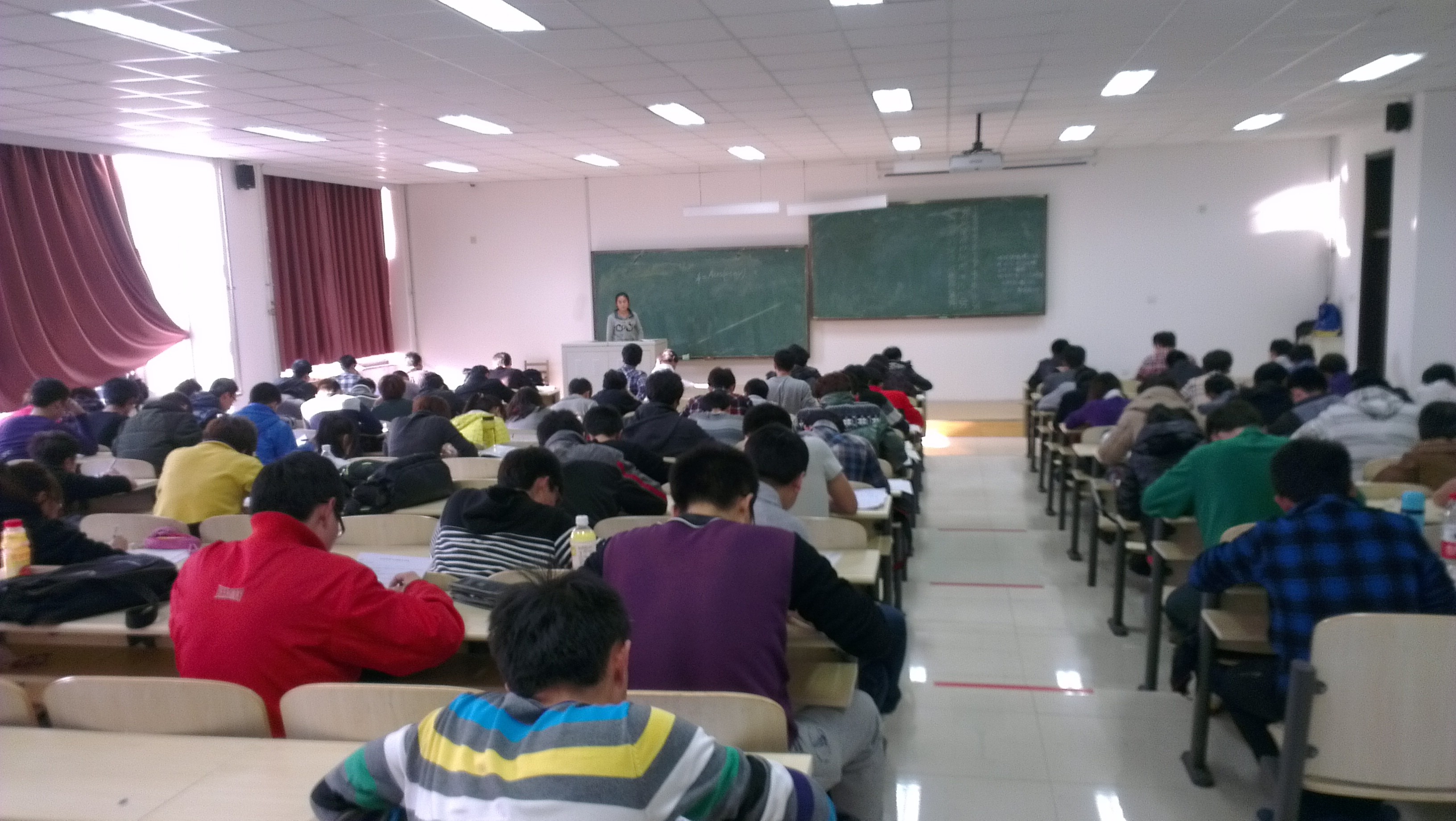 本次期中模拟考试针对2011级同学普遍反映较为难学的科目(复变函数、大学物理Ⅱ、随机数学)进行了期中测试,考试题目由各科任课老师出题,涵盖了各科目已学的重点内容和历年考试难点。考试采用员工自主监考、辅导员老师巡考形式进行,在考试过程中同学们态度端正,积极思考,认真答题,严格遵守考场纪律。考试结束后,2011级组织专门人员对考试试卷进行了评判打分,并按照专业对期中模拟考试成绩进行了排名,并向全体同学公布。通过此次期中模拟考试,同学们纷纷反映找到了现阶段学习中存在的问题和不足,为下一阶段更好地学习指明了方向。