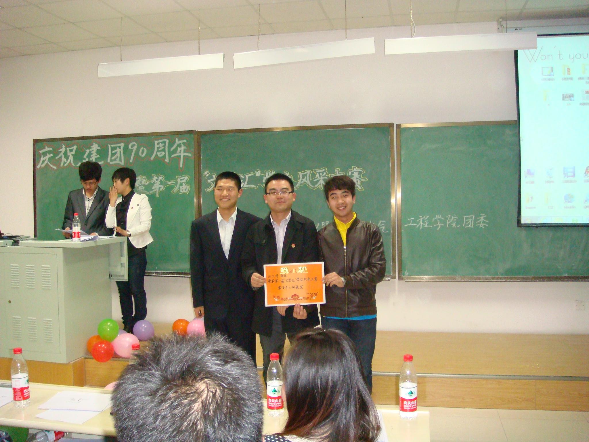 本次比赛共分3个环节,首先是“党团在我心,短片秀风采”环节,选手们以DVPPT等多种形式表达了对中国共青团90周岁生日的美好祝福,并展现当代青年老员工的良好风采。第二个环节是“我爱记励志歌词”,参赛选手通过接唱励志歌曲展示了各自的才艺和风采。在随后的“配出我风采”环节中,同学们通过为经典革命电影配音的方式彰显自我、团结协作,为大家带来了许多的快乐。整个活动过程同学们热情高涨、欢声不断,很好地体现了“90后”青年老员工的青春风采。活动最后,院团委副书记兼2011级辅导员朱宇对活动进行了总结点评并为获奖选手颁奖留念