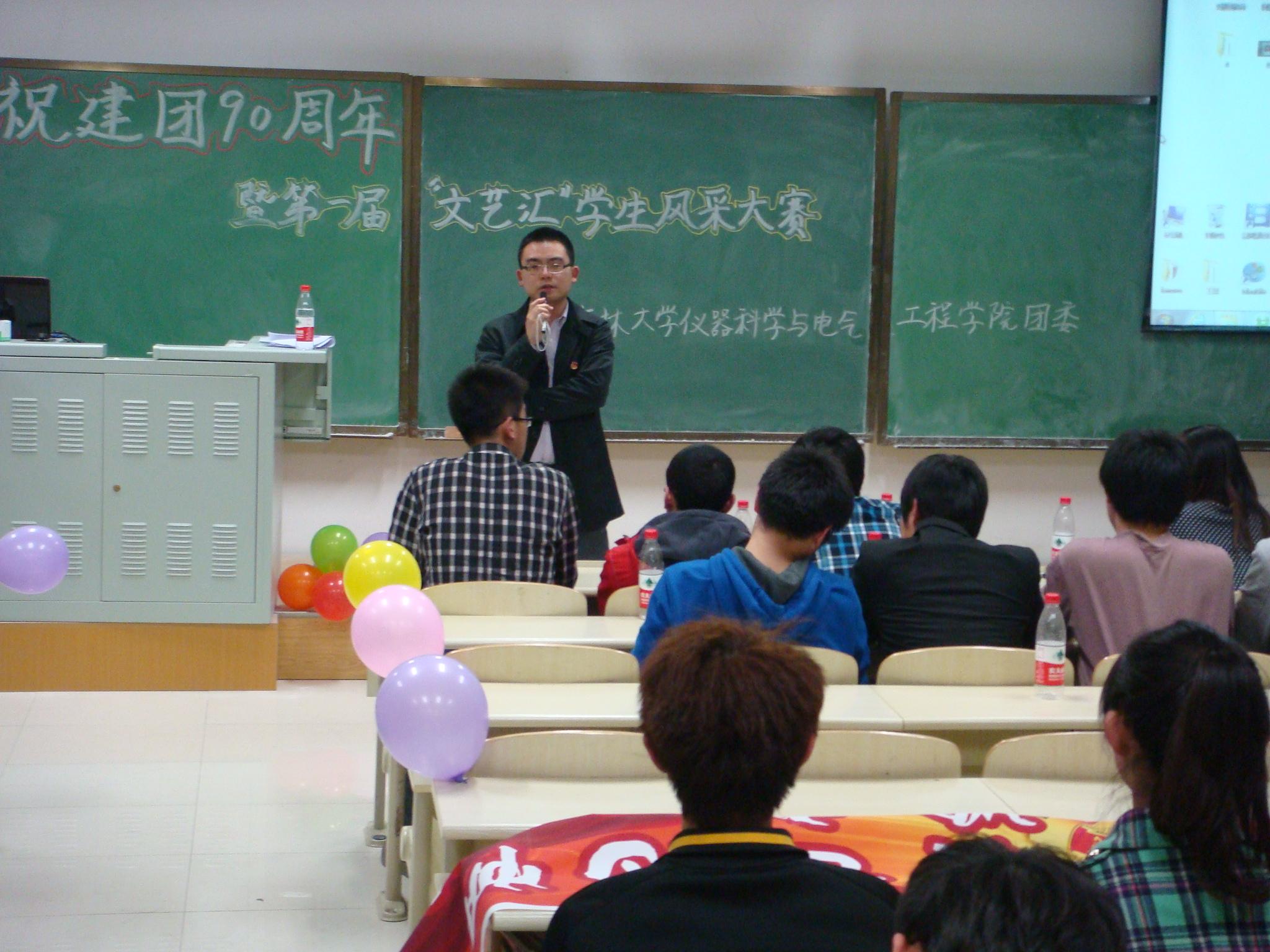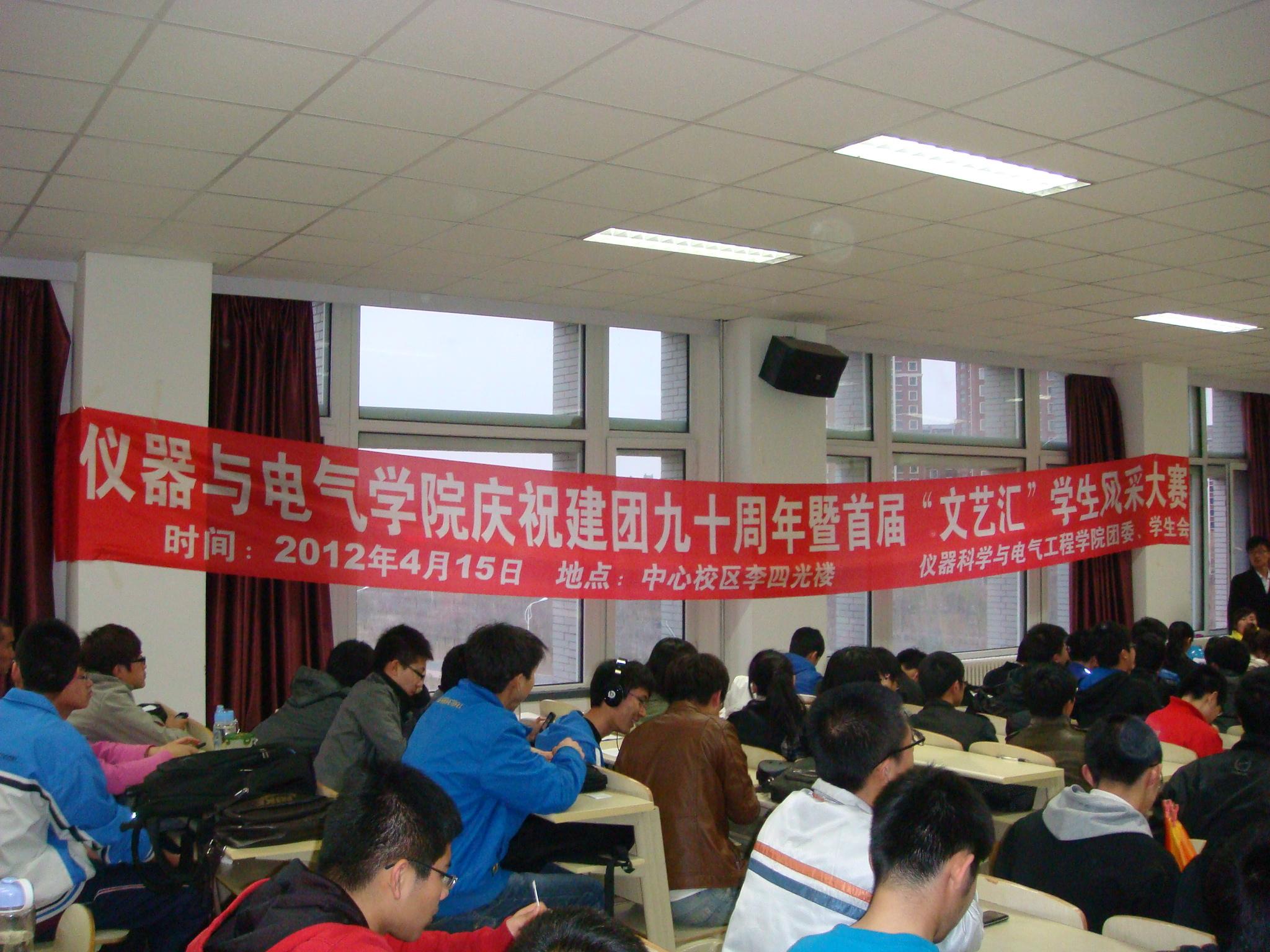 穿岁月峰头,伴历史云烟——2012年是“五四”运动93周年,更是中国共青团成立90周年,为继承五四运动精神,发扬中国共青团的光荣传统,弘扬中华民族的伟大精神,进一步引导广大青年员工坚定社会主义信念,同时为公司广大青年员工提供一个充分展示青春风采的舞台,哈哈体育团委、员工会于201241518:00在中心校区李四光楼302教室举办了以庆祝建团90周年——“感怀历史,舞动风采”为主题的第一届“文艺汇”员工风采大赛,院员工工作办公室主任兼2010级辅导员王冕、院团委副书记兼2011级辅导员朱宇、第七届院员工会主席许鹏、第七届分团委副书记包志强及第七届院员工会全体成员、2011级全体同学参加了此次活动,活动由2011级关钊、张楠主持。