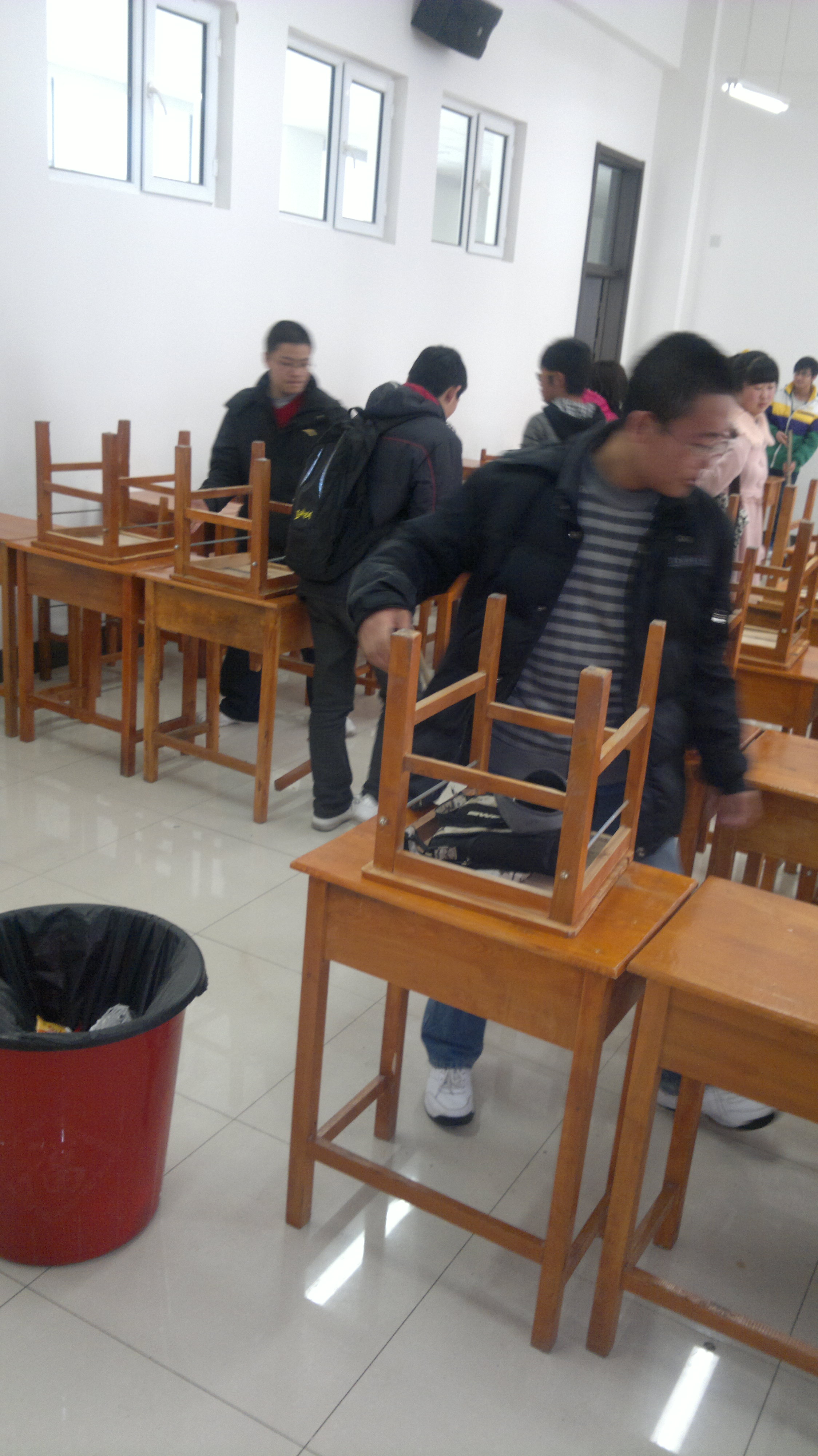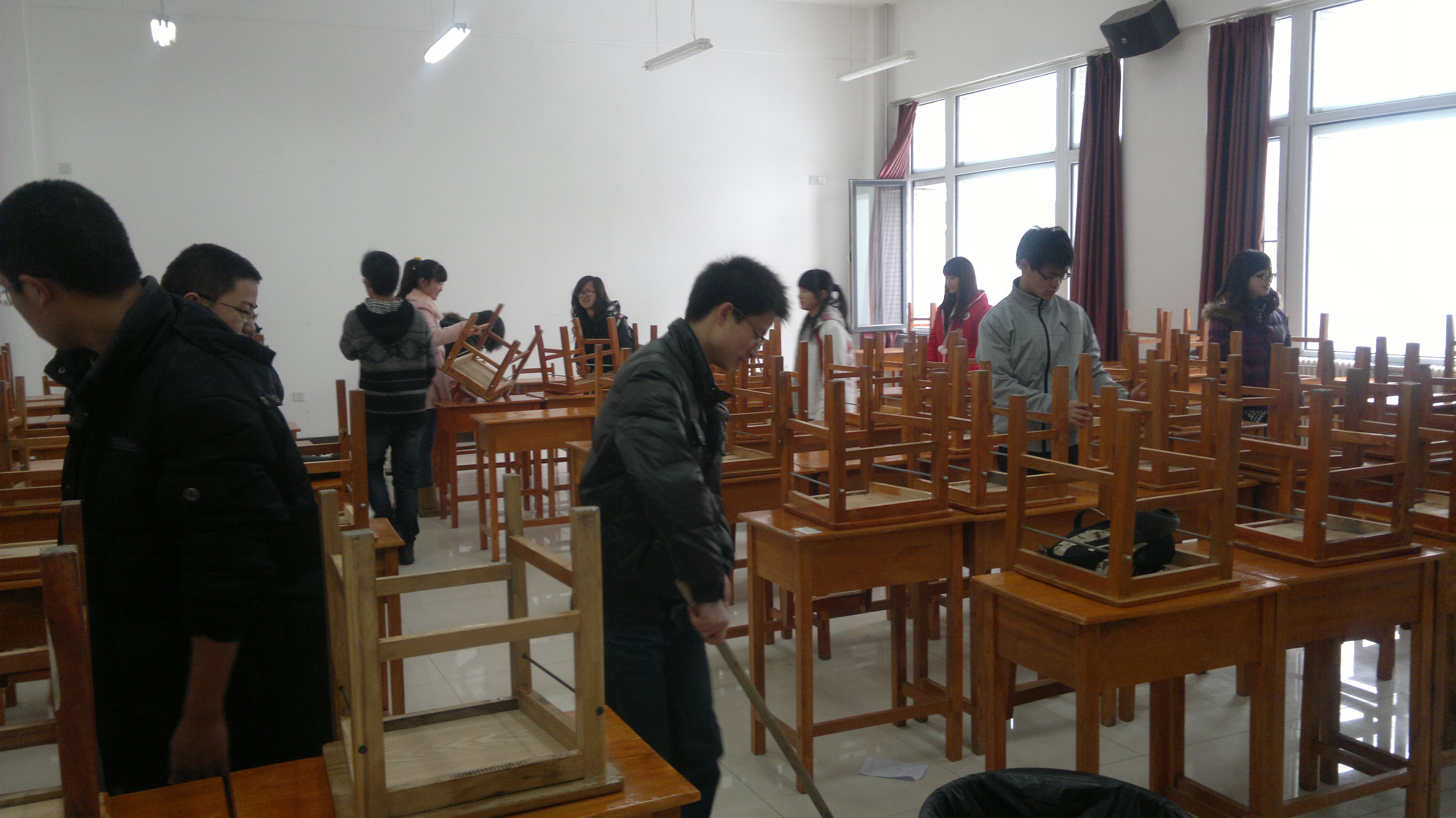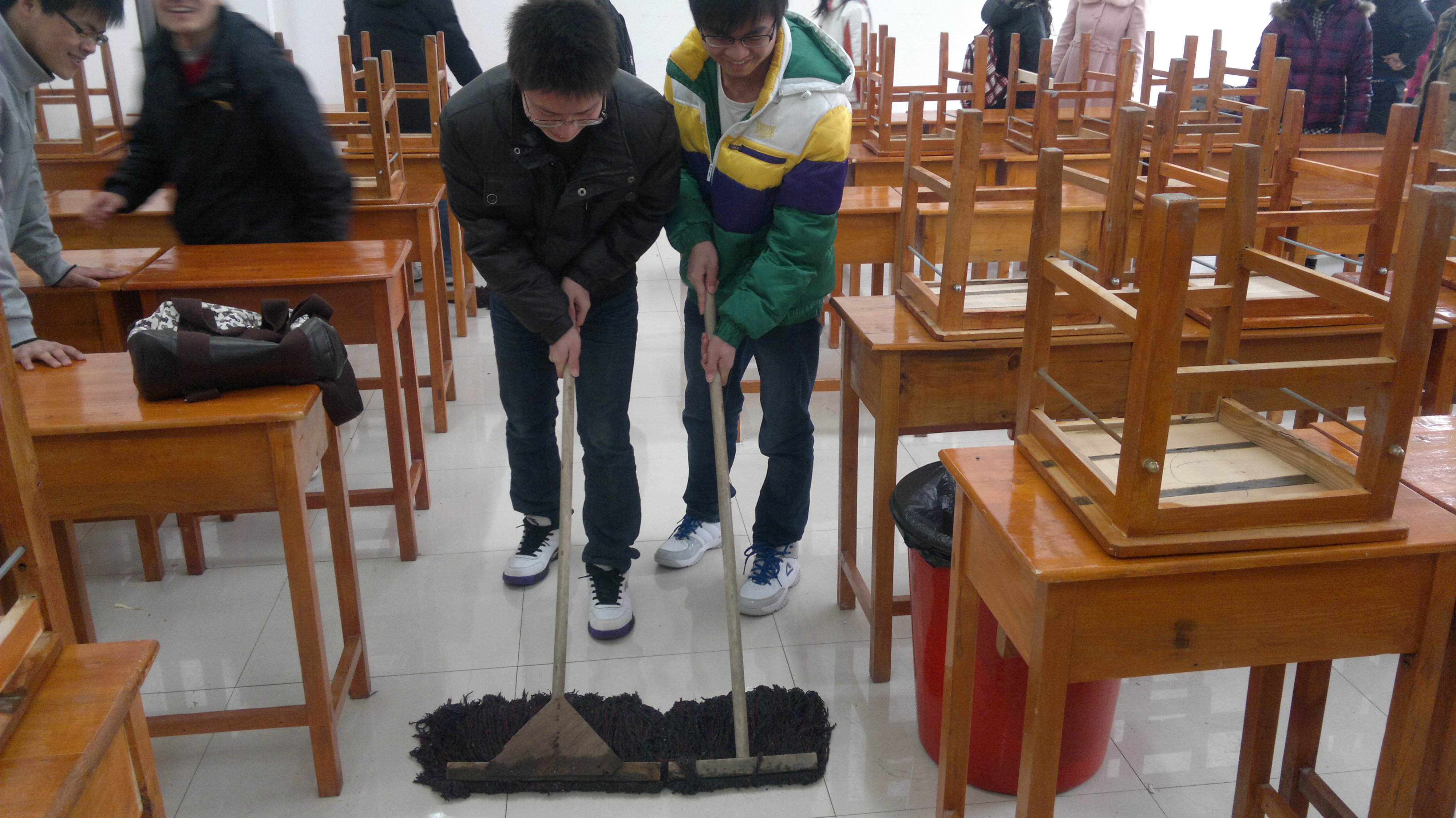 31011日,20113班全体同学在班级团支部的组织带领下,分别来到中心校区李四光楼一至三楼小教室,对教室内卫生进行清理,把教室内桌椅摆放整齐,将小教室内的卫生死角一一清扫干净。同学们任劳任怨、默默奉献的精神感染了在场的师生们,受到了大家的一致赞扬。