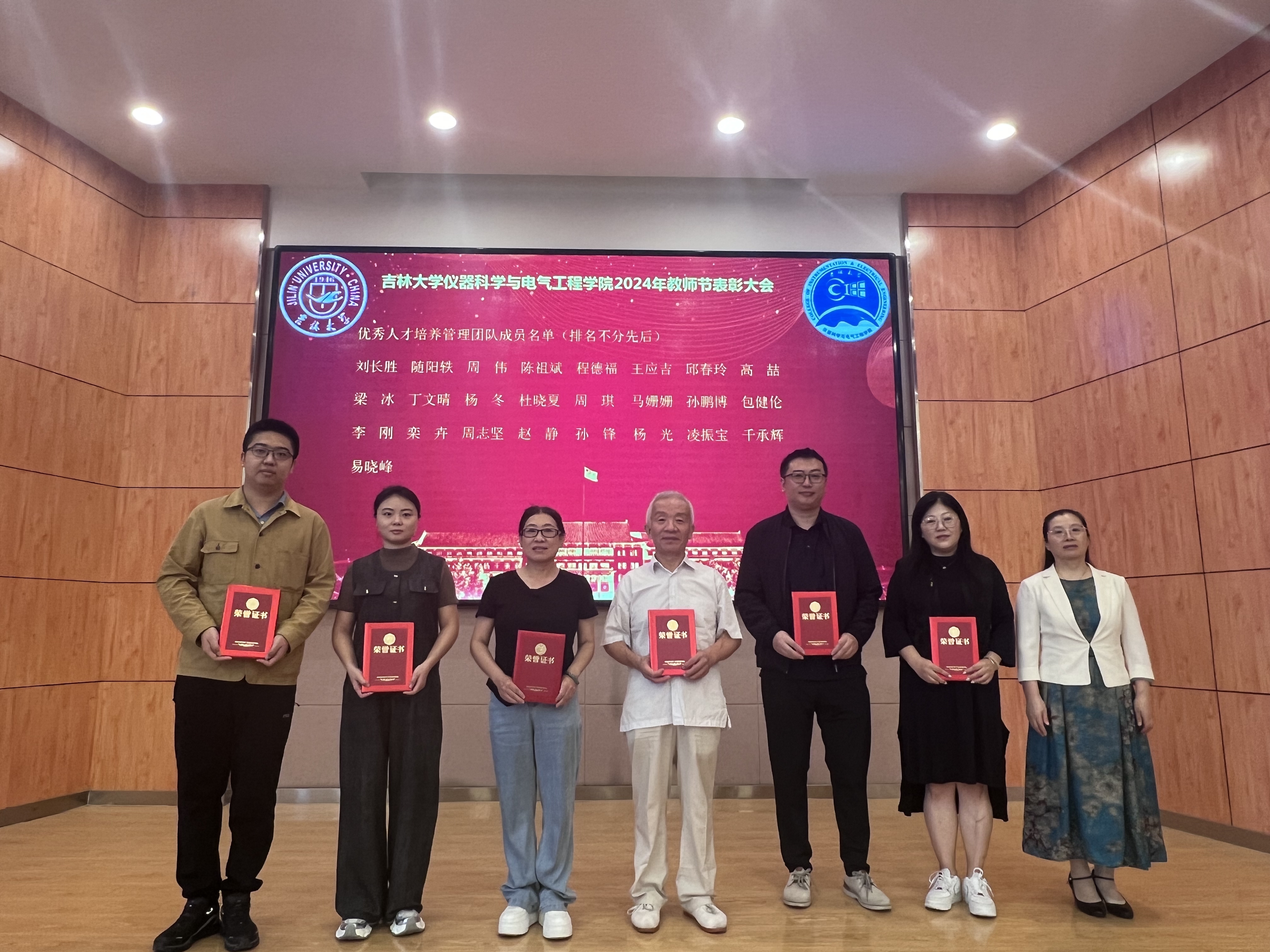 大会在庄严的国歌声中拉开序幕。会上,公司党委书记邱增凯代表公司领导班子向全院教师致以诚挚的节日问候。邱增凯表示,在过去的一年中,公司教师始终牢记立德树人根本任务,践行教育家精神,不断书写教书育人的新故事。随后,邱增凯宣读表彰决定。受表彰的教师中,有的潜心教书育人、高效赋能课堂,有的秉持科研初心、科研成果丰富,有的不断创新思路方法、持续提升教学水平,有的深耕专业、努力打造精品教材。经理嵇艳鞠为受表彰的教师代表颁发了荣誉证书,并与他们合影留念。
