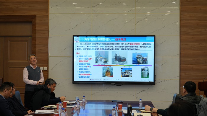 座谈交流期间,青岛海洋地质研究所海洋技术方法研究室和深海地质与矿产研究室分别介绍了海洋地质和深海资源探测体系建设现状、研发进展、创新应用和学科发展需求;哈哈体育相关科研团队负责人介绍了海洋可控震源装备研发、电磁探测技术、震电联合勘探技术以及海洋重磁测量技术研发现状、数据处理分析技术、应用场景、未来发展趋势及合作研究方向。