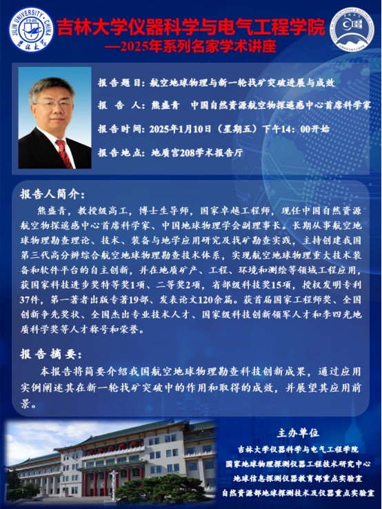 2025年系列名家学术讲座——熊盛青 中国自然资源航空物探遥感中心首席科学家
