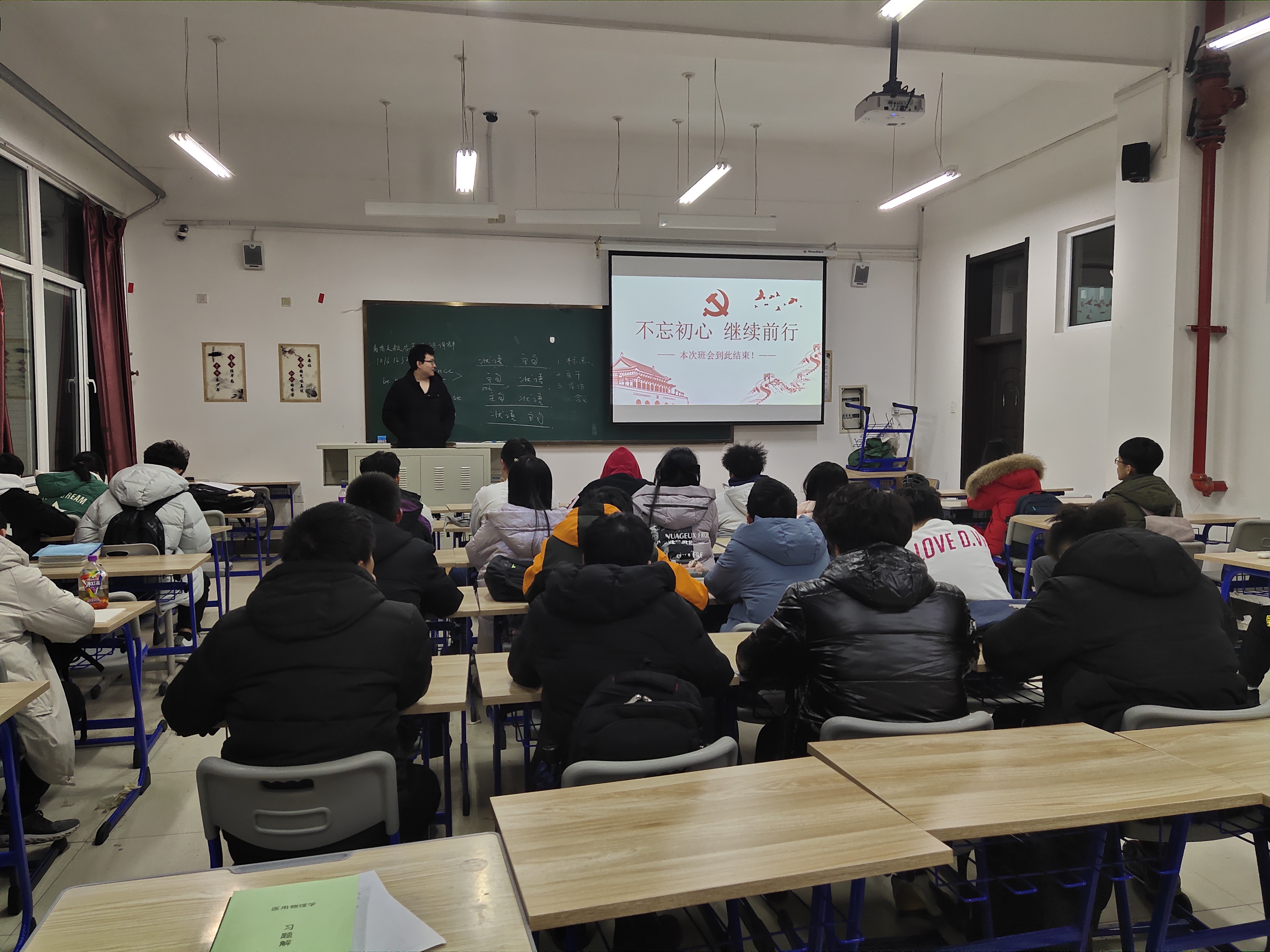 为调动同学学习社会主义核心价值观的积极性和主动性,进一步提升同学们对社会主义核心价值体系的理解,11月21日下午5:20,哈哈体育651905班同学于李四光楼113教室举行了主题为“不忘初心,继续前行”的团日活动班会。