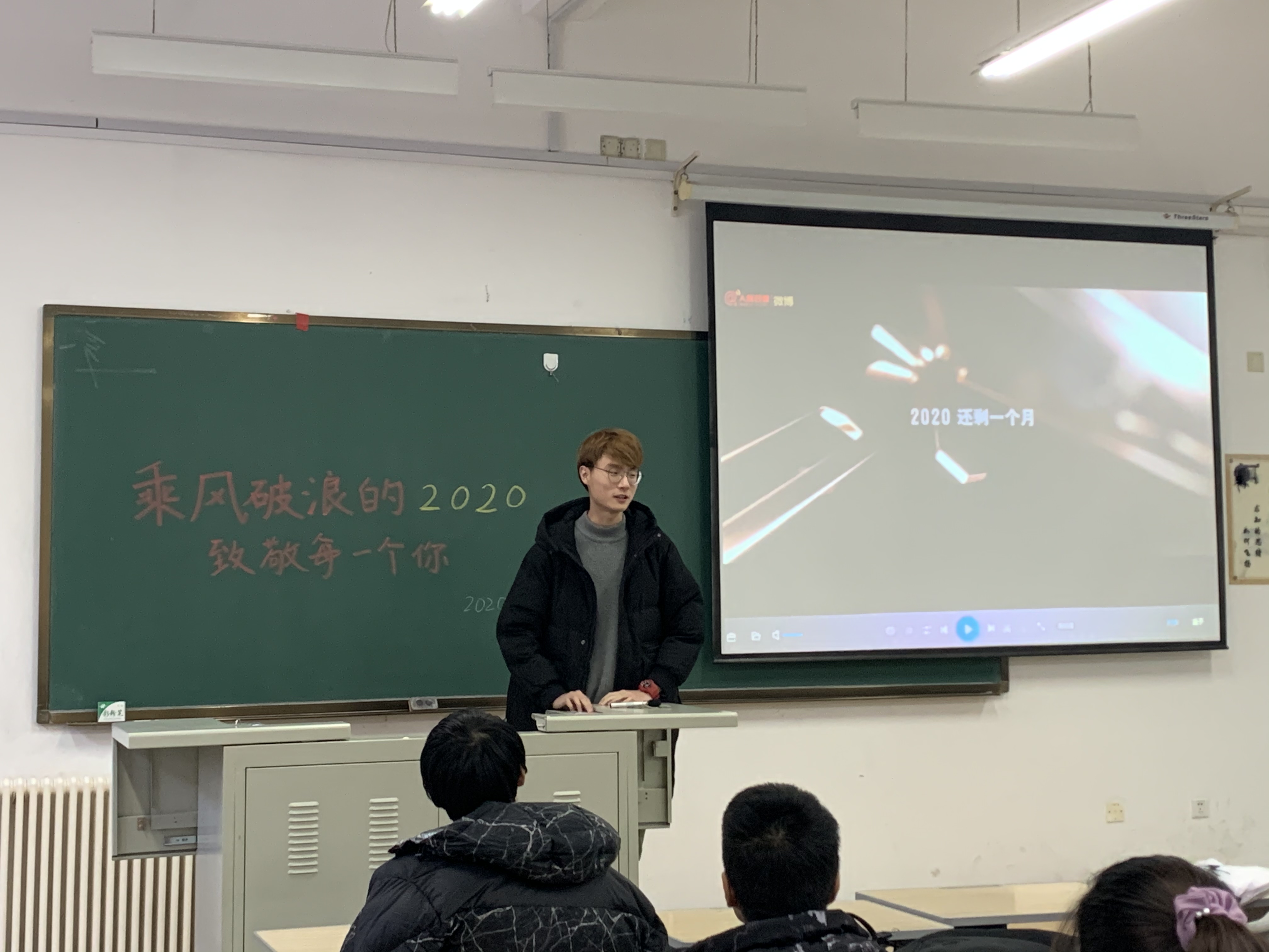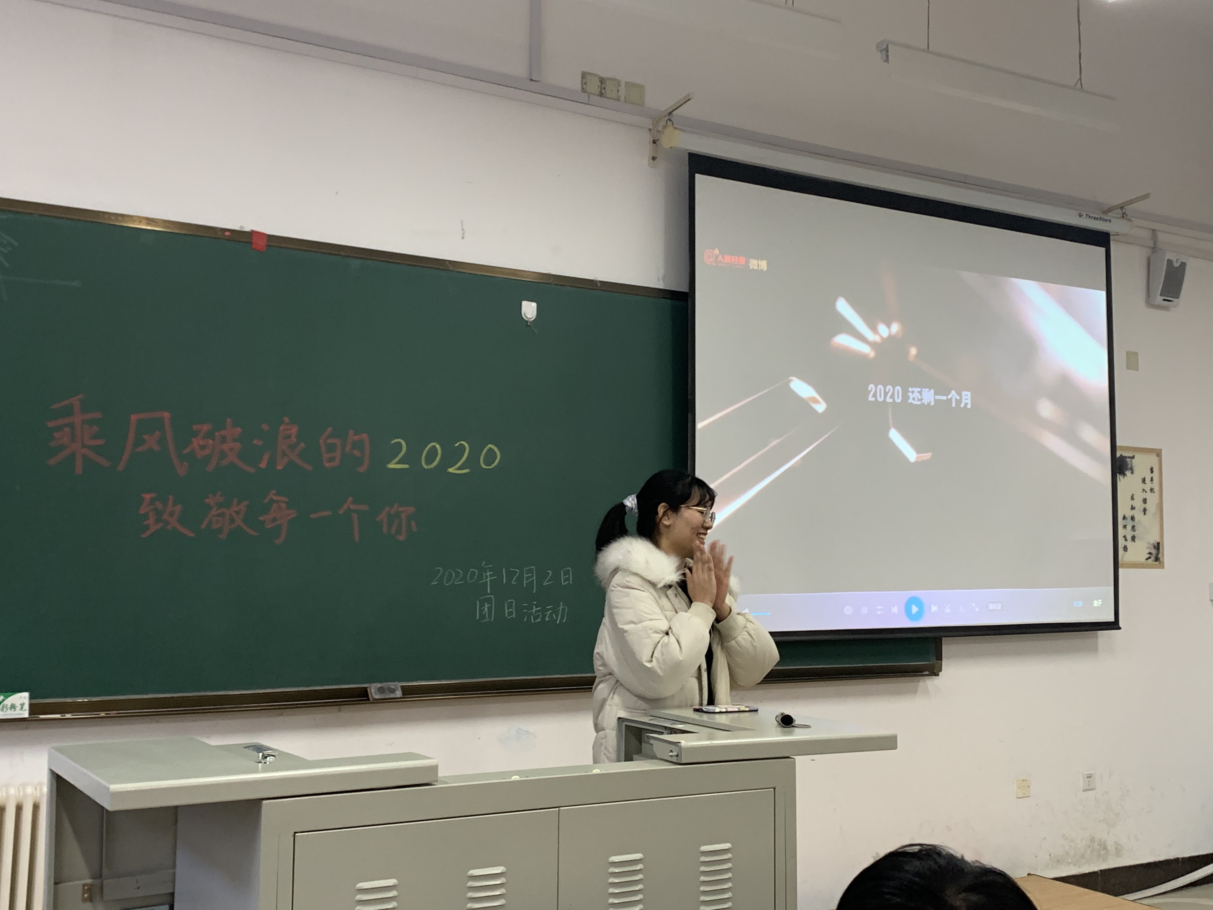 为促进同学们的交流,增进同学间的友谊,回顾2020年的点滴,迎接2021年的到来,哈哈体育651904团支部于2020年12月2日下午3:20在李四光教学楼114教室举办以“乘风破浪的2020,致敬每一个你”为主题的团日活动。本次活动由高思琦同学主持,651904班全体人员参与本次团日活动。
