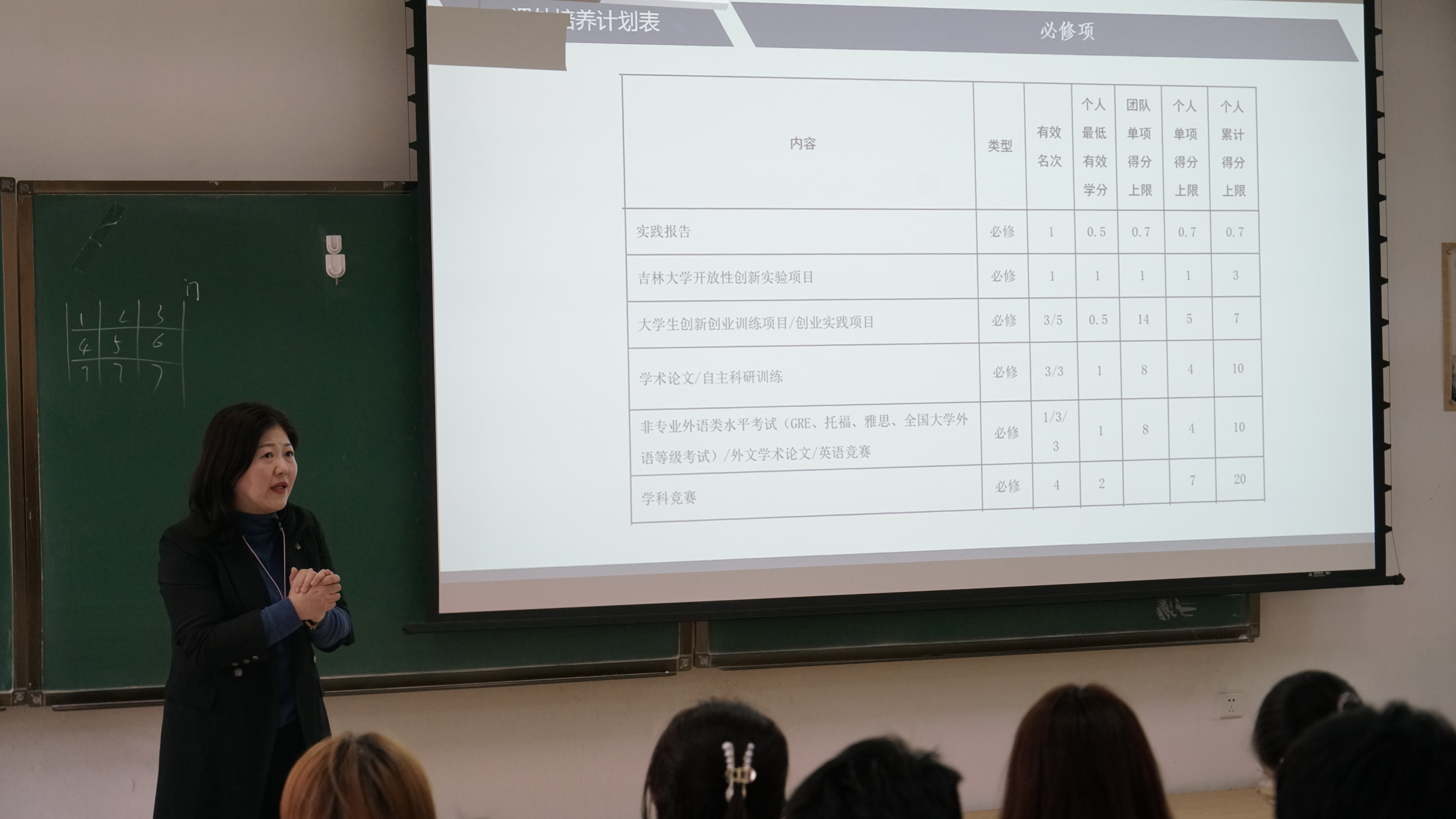 首先,千承辉老师、张莉老师结合2018版课外培养计划逐条详细地介绍了每条学分所对应的项目以及得分的明细。在介绍的过程中老师还具体举例,向同学们介绍了每条学分设置的内在逻辑和其想要培养同学的能力,希望同学们能认真对待,在完成培养计划的过程中得到成长。
