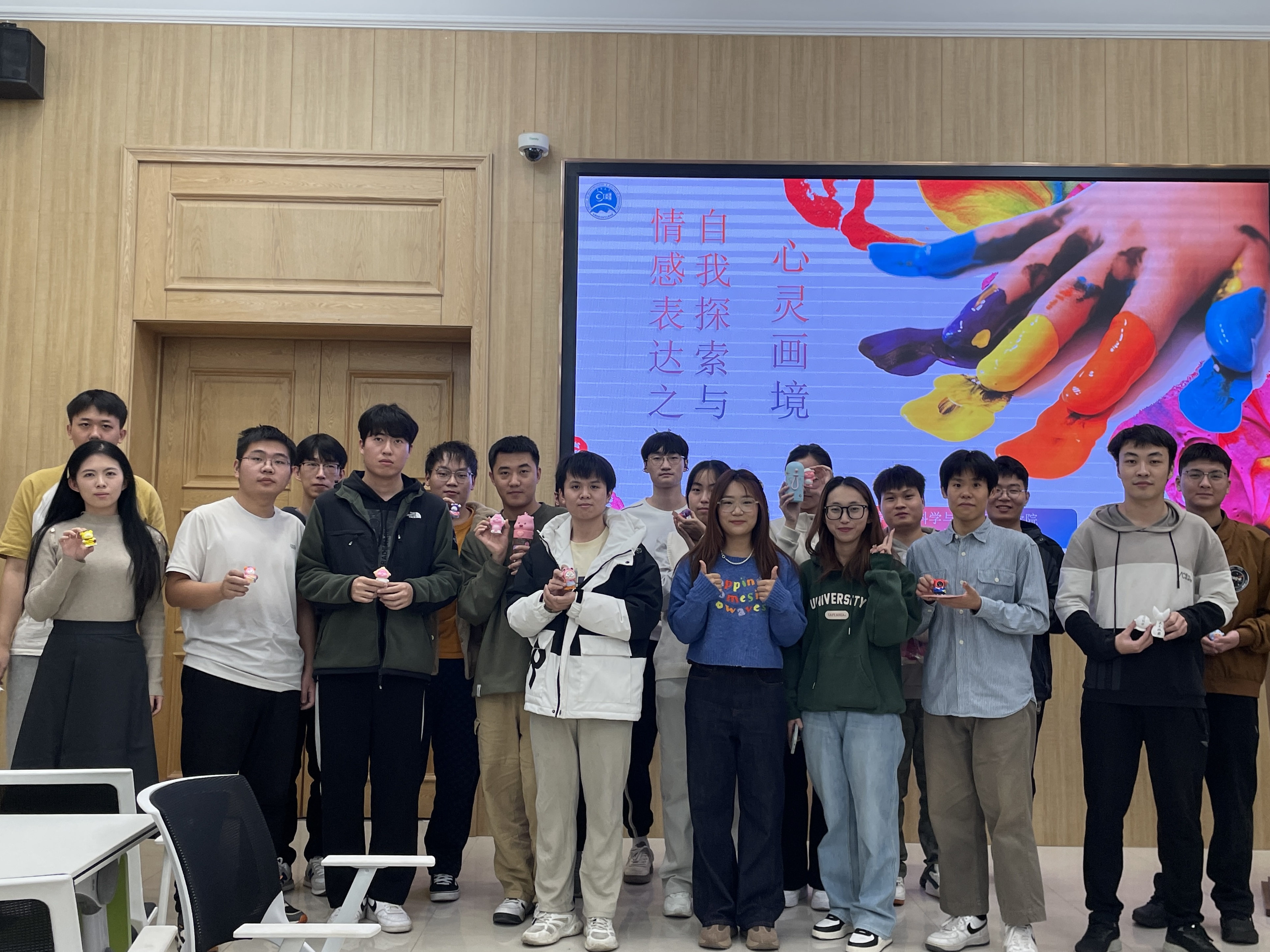 在活动中,为克服初次相遇的拘谨,主持人设计了“破冰”游戏,如“答非所问”和“萝卜蹲”,增添了许多欢声笑语。同学们在轻松的游戏中彼此熟悉,逐渐敞开心扉。随后,活动迎来了核心环节——“石膏涂色”创作。大家化身“艺术大师”,在石膏模型上自由运用色彩,描绘心中的美好世界。创作过程中,大家充分发挥想象力与创造力,或细腻描绘颜色,或大胆碰撞颜色,最终每件作品都色彩斑斓、独具个性,展现出同学们内心的独特情感与艺术灵感。完成创作后,同学们围绕作品展开交流,讲述创作灵感和内心感受。同学们纷纷表示,本次活动不仅放松了心情,更体验到了自我探索的乐趣。活动最后,同学们还获得了精美礼品。