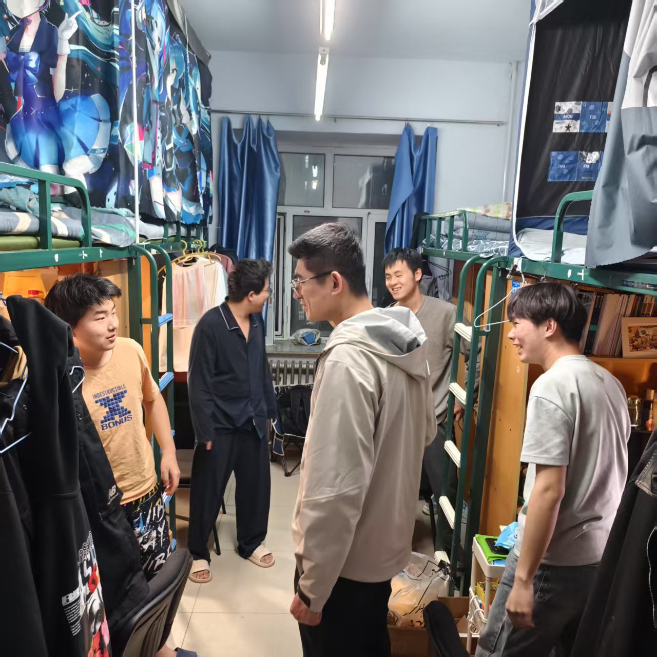 检查过程中,王老师逐间走访员工寝室,针对电源插座使用规范、电器设备合规性等关键环节展开细致核查。通过现场讲解违规电器的潜在风险,强化员工安全用电意识。同时,建议同学们勤打扫勤通风,共同维护整洁有序的居住环境。除安全检查外,王老师还与同学们展开了亲切交流,详细询问课程学习进度、校园生活适应情况。