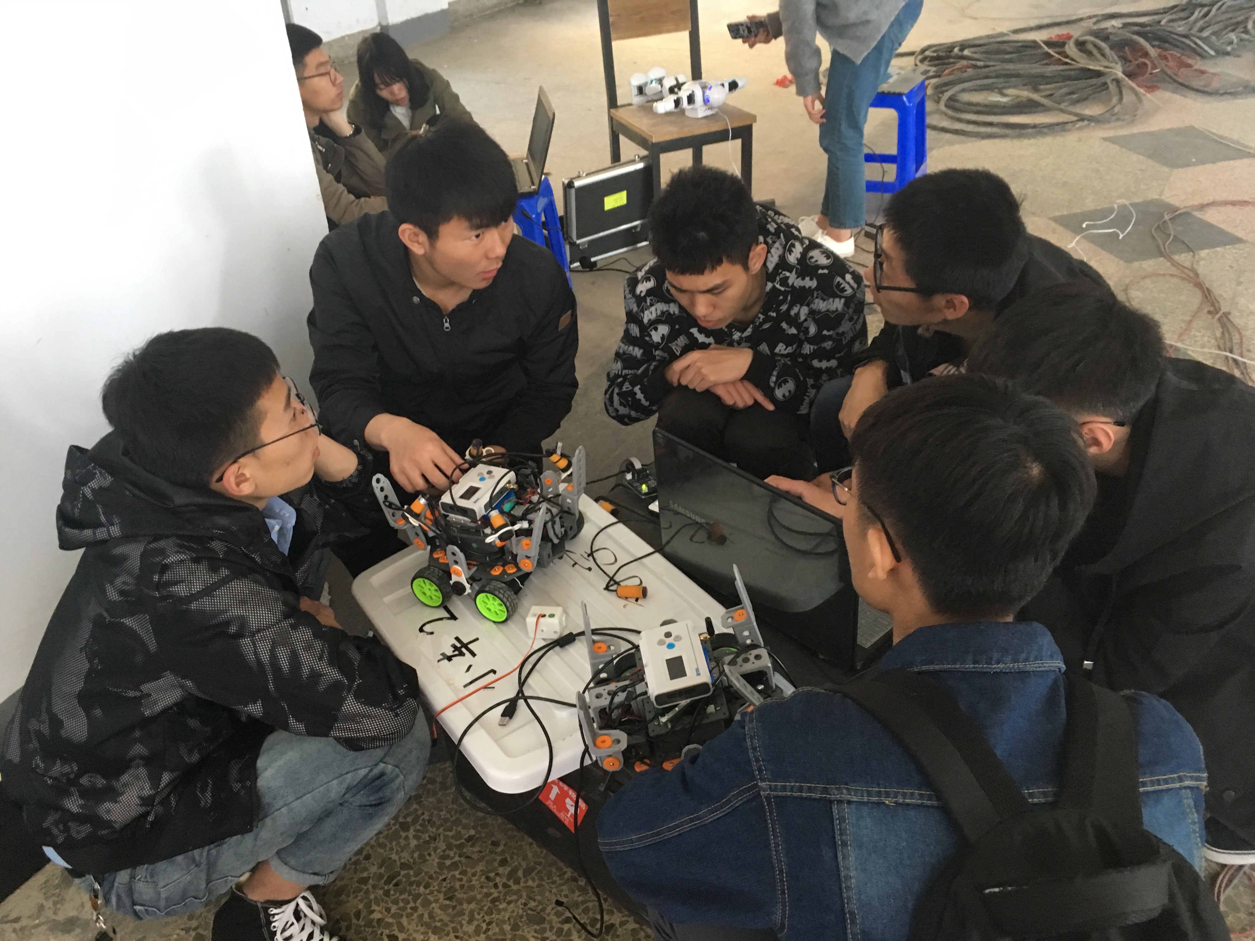 机器人各小组成员在周一早上九点准时到朝阳食堂四楼,在千老师的安排下,老员工科技创新协会成员协助千老师进行机器人大赛预演。首先是大一各1V1机器人小组进行机器人对抗赛,在模拟搭建的场地中,一些机器人小组出现了各种各样的小错误。有的是在编程中没有实际考虑舞台的大小、高度等因素;有一些小组是因为对比赛规则没有了解清楚,导致所做机器人出现了超重问题;还有一些则是出现了对抗性能差的问题。但发现问题后各个小组在学长学姐的指导下,调整程序编写成功实现了问题的解决。其次是飞机组的预演,在千老师讲解完飞行器比赛规则后,各个飞行器小组都进行了尝试。尽管尝试过程中出现了一些问题,但是本次活动的目的就是发现问题,解决问题,所以发现问题后飞机组及时与学长进行交流并成功的解决了一些问题,同时也加深了他们对飞行器的理解。