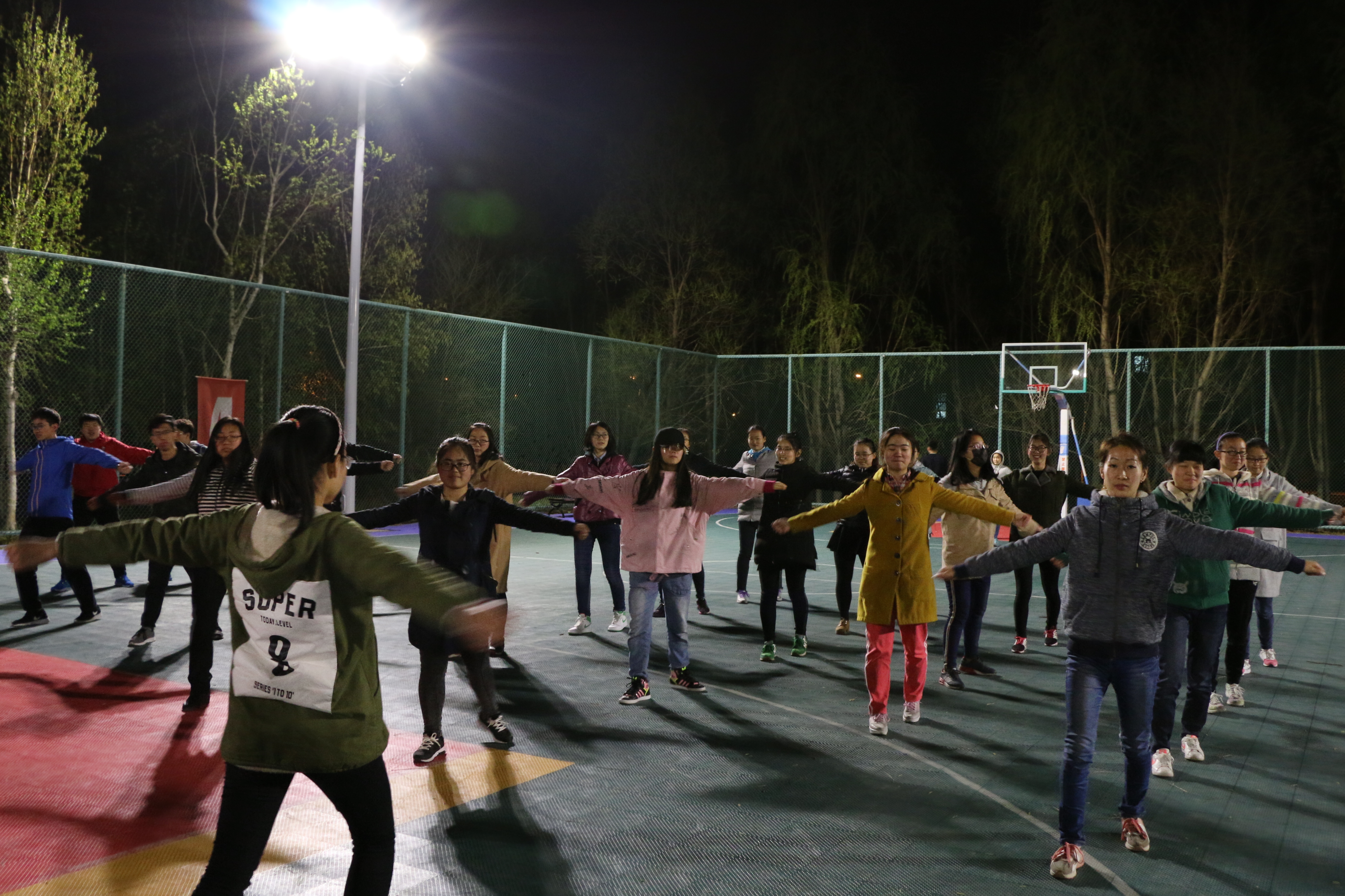 为备战即将到来的校运动会,哈哈体育于2017年4月27日晚9:20在体育馆东侧篮球场展开广播体操的训练工作